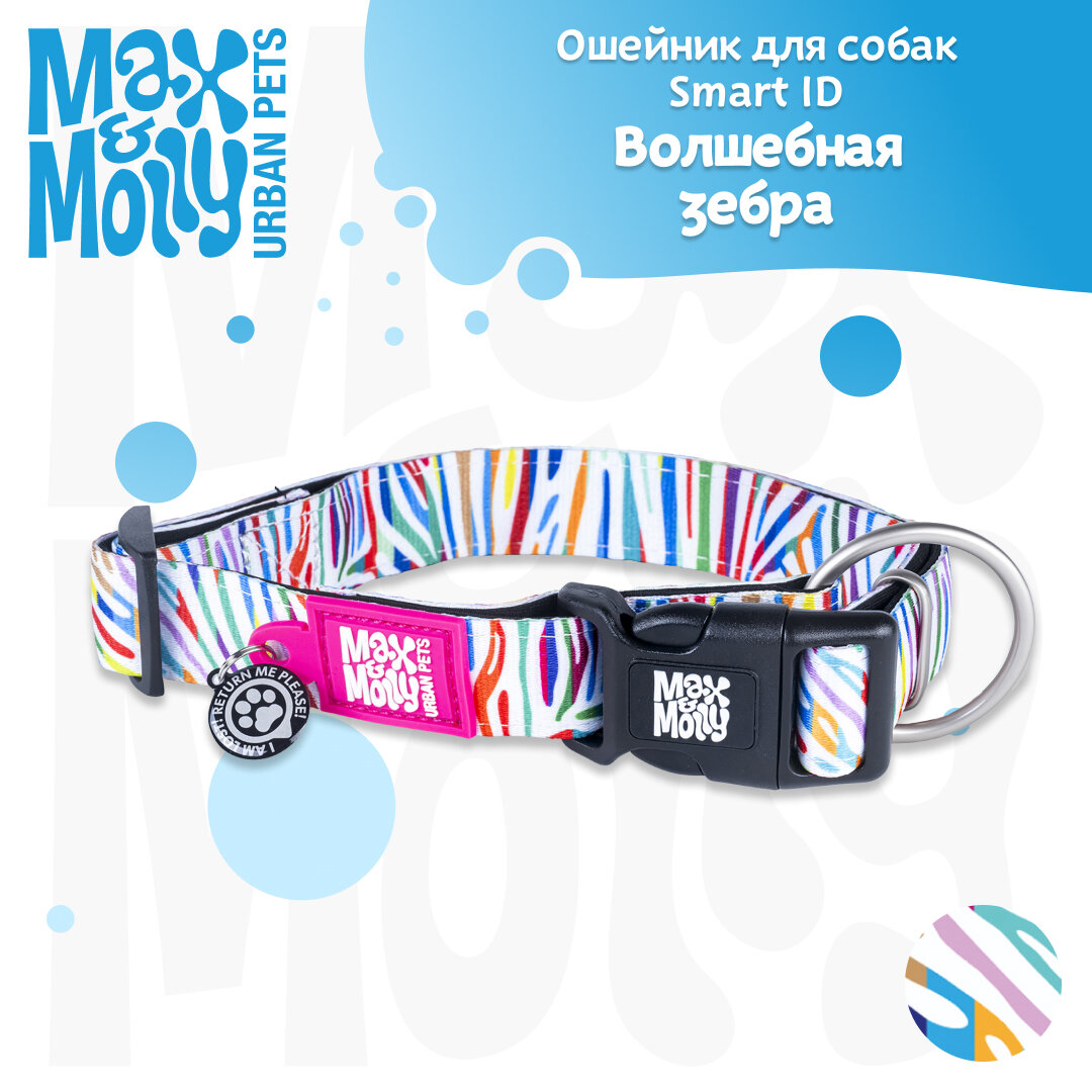 Ошейник для собак Smart ID, размер XS, Волшебная Зебра , Max&Molly информация: