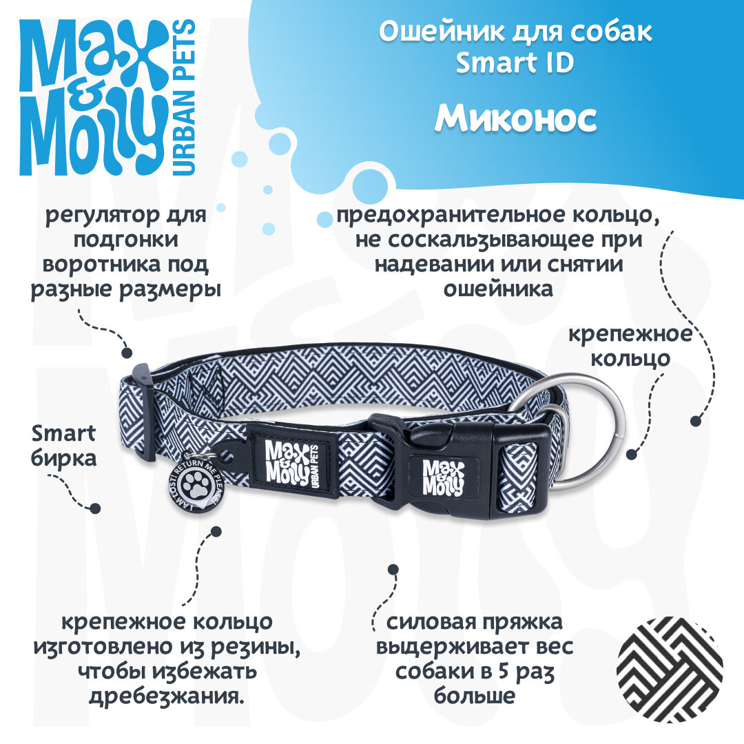 Ошейник для собак Smart ID, размер S, Миконос черный, Max&Molly информация: