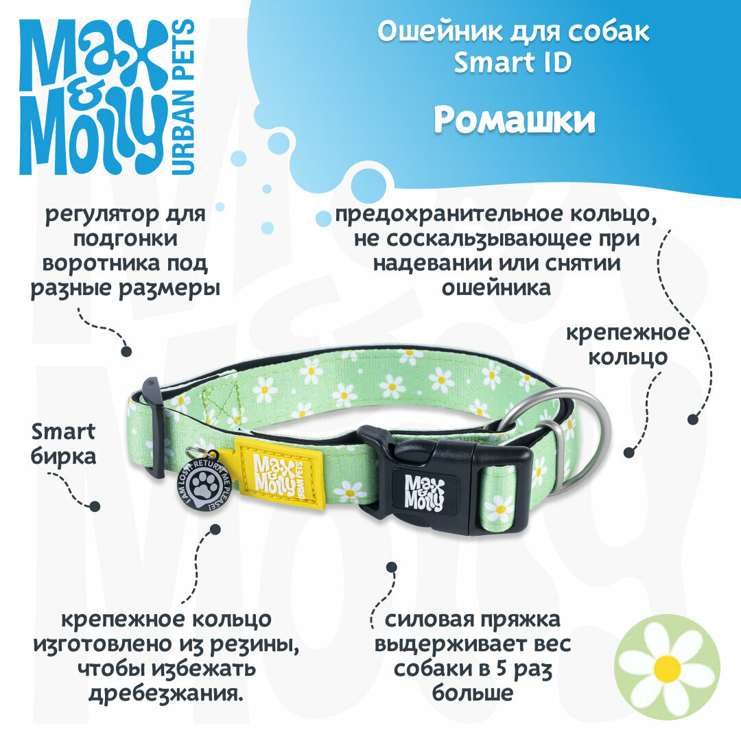 Ошейник для собак и Smart ID, размер XS, Ромашки, 232081 Max&Molly 1 160 ₽