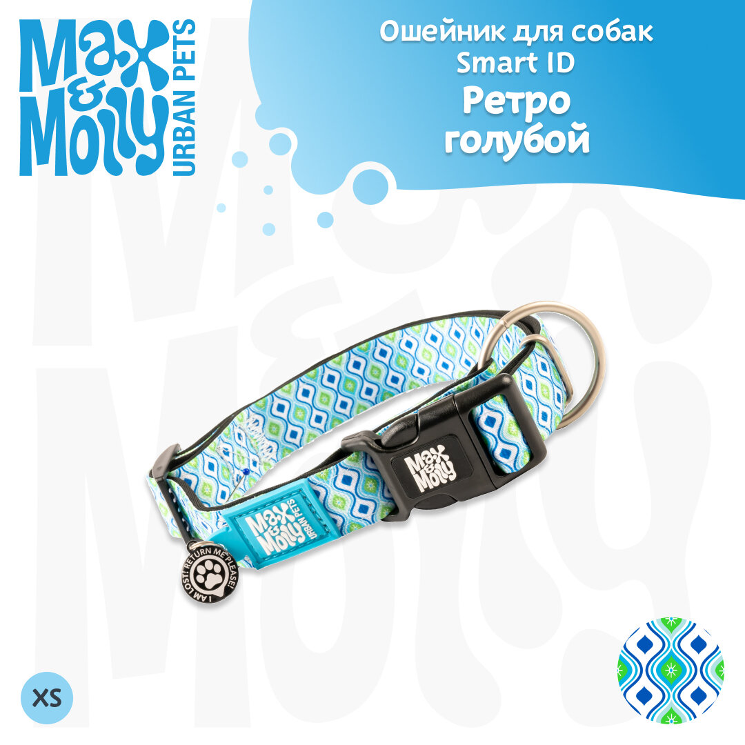Ошейник для собак Smart ID, размер XS, Ретро голубой, Max&Molly информация: