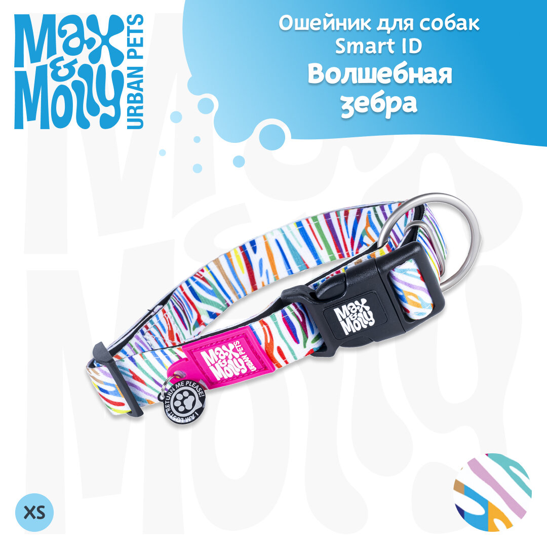 Ошейник для собак Smart ID, размер XS, Волшебная Зебра , Max&Molly 1 198 ₽
