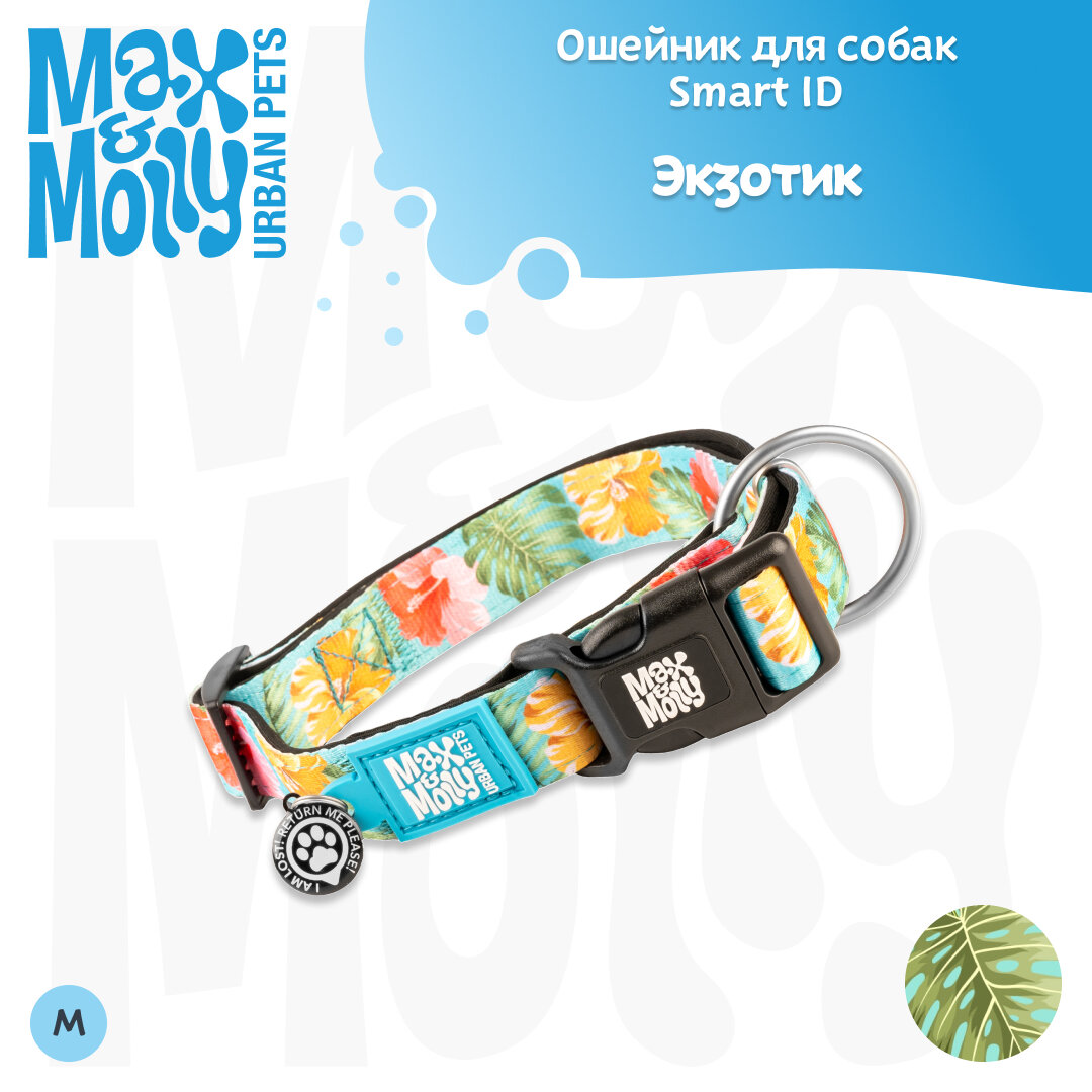 Ошейник для собак Smart ID, размер M, Экзотик, Max&Molly информация: