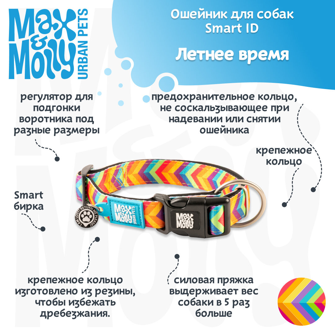 Ошейник для собак Smart ID, размер S, Летнее время, Max&Molly 1 334 ₽