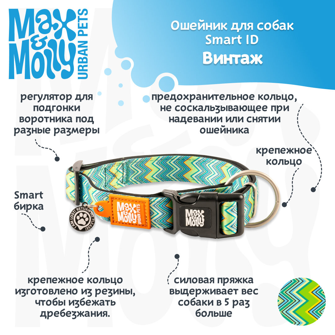 Ошейник для собак Smart ID, размер S, Винтаж, Max&Molly информация: