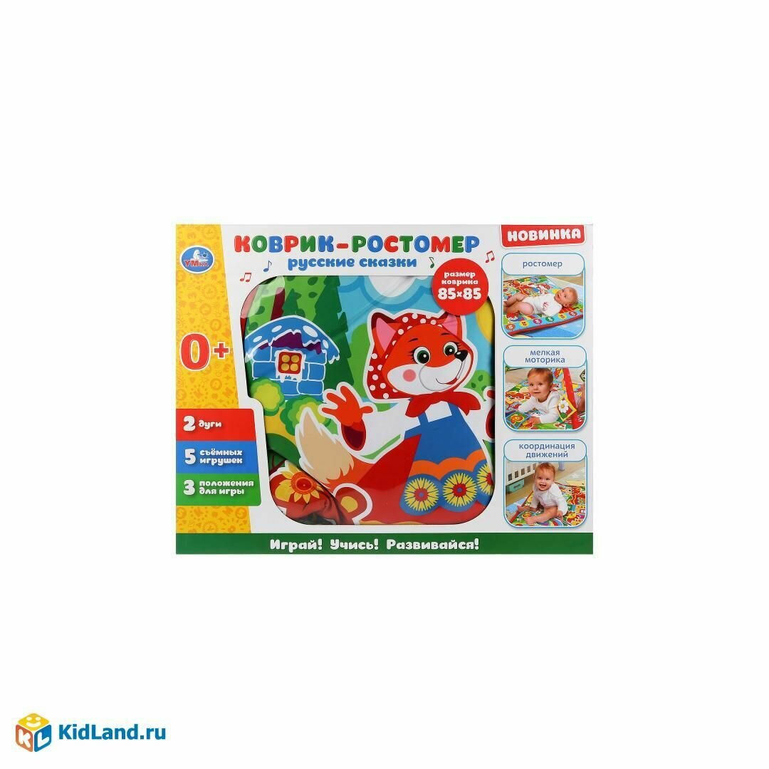 Детский игровой коврик-ростомер с мягкими игрушками-пищалками на подвеске в кор. "Умка" информация: