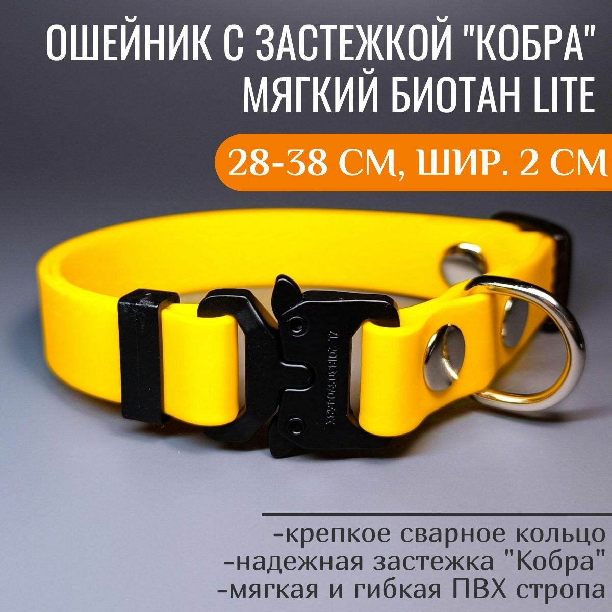 Отзывы на R-Dog Ошейник из мягкого биотана Lite, металлическая пряжка "Кобра", цвет желтый, длина 28-40 см, ширина 2 см