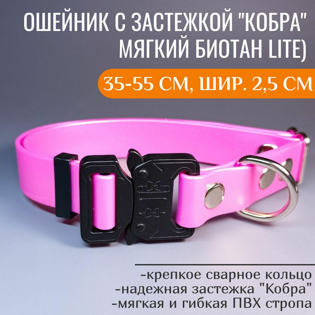 10 цен на R-Dog Ошейник из мягкого биотана Lite, металлическая пряжка "Кобра", цвет розовый перламутр длина 35-55 см, ширина 2,5 см