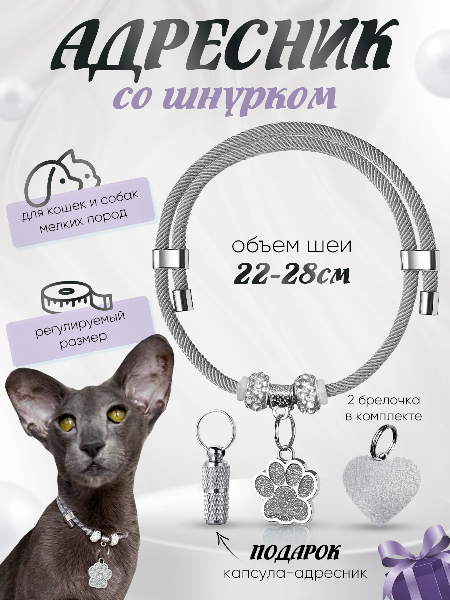 Ошейник с адресником для кошек и собак, миланский шнурок, 22-28 см 550 ₽