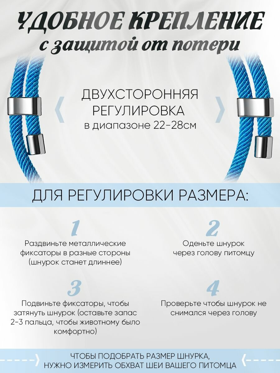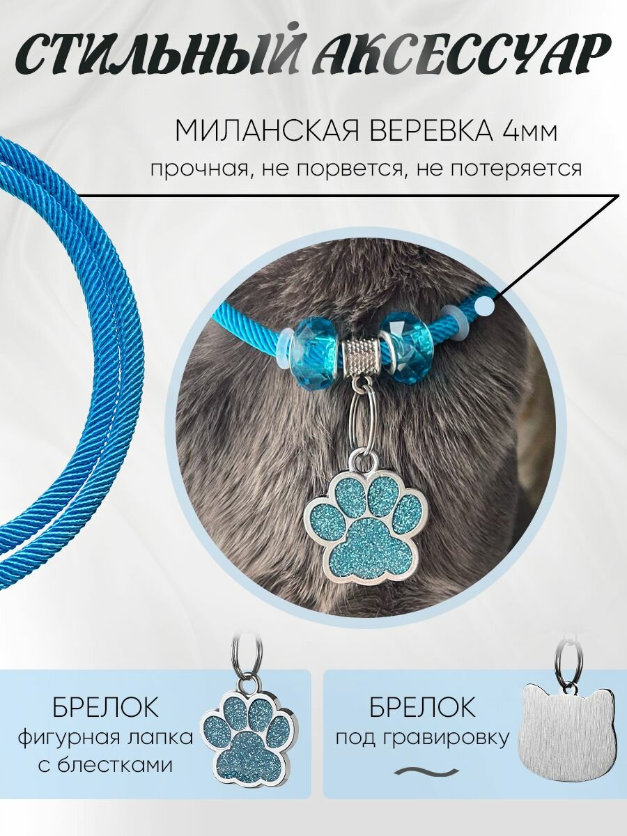 Ошейник Балуем Котика, для кошек и собак, с адресником, миланская веревка, 22 см - 28 см информация: