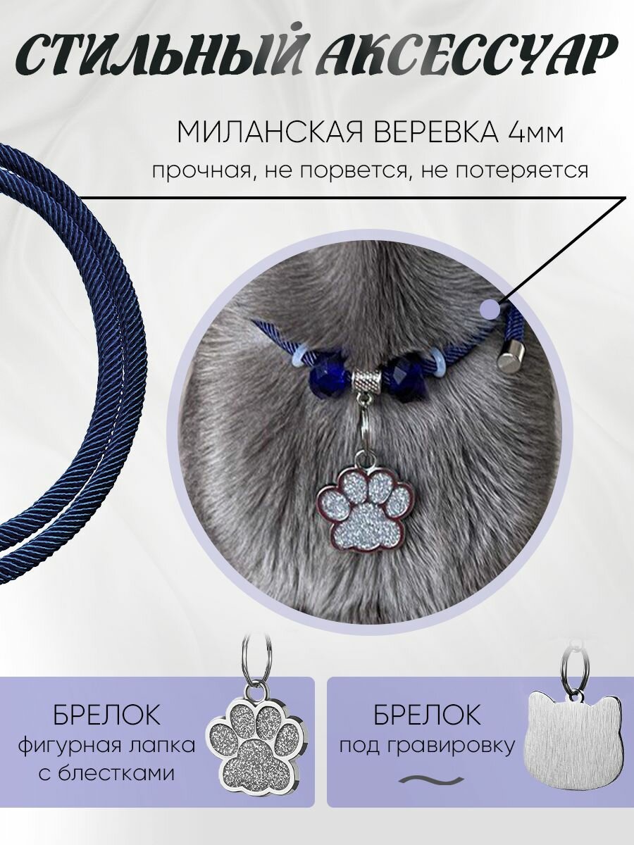 Ошейник Балуем Котика, для кошек и собак, с адресником, миланская веревка информация: