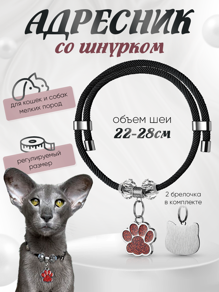 Ошейник с адресником для кошек и собак, миланский шнурок, 22-28 см 550 ₽