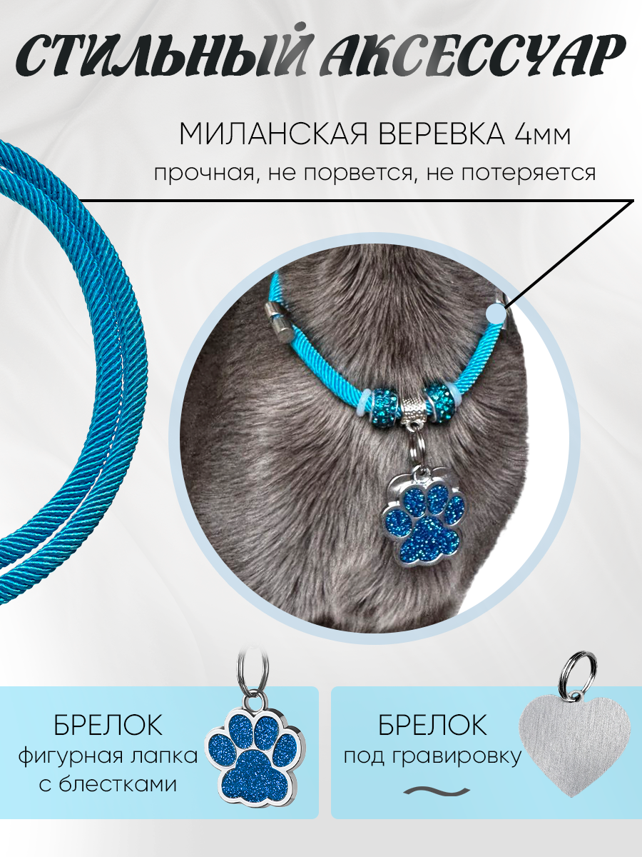 Ошейник с адресником для кошек и собак, миланский шнурок, 22-28 см 550 ₽