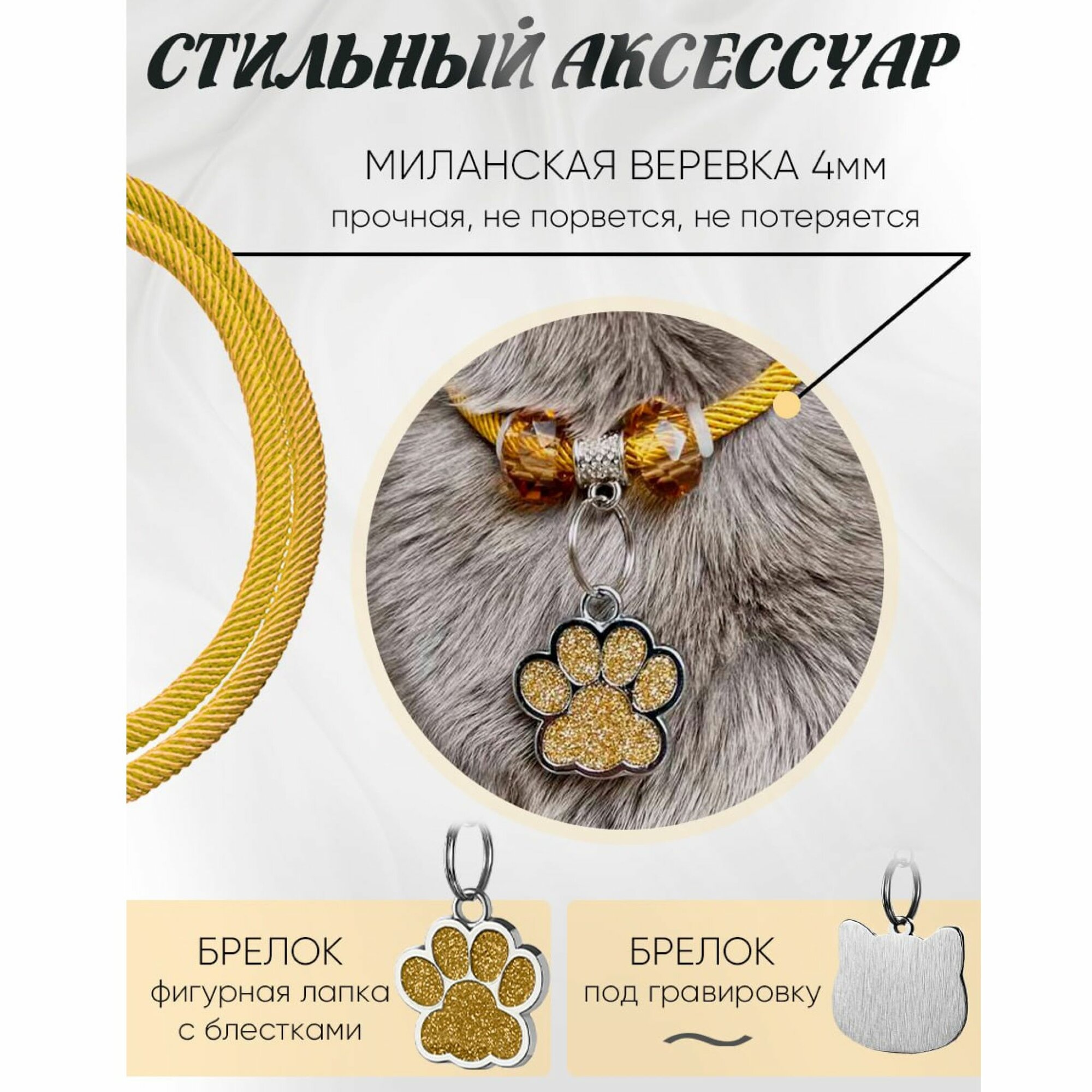 Ошейник с адресником для кошек и собак, миланский шнурок, 22-28 см 550 ₽