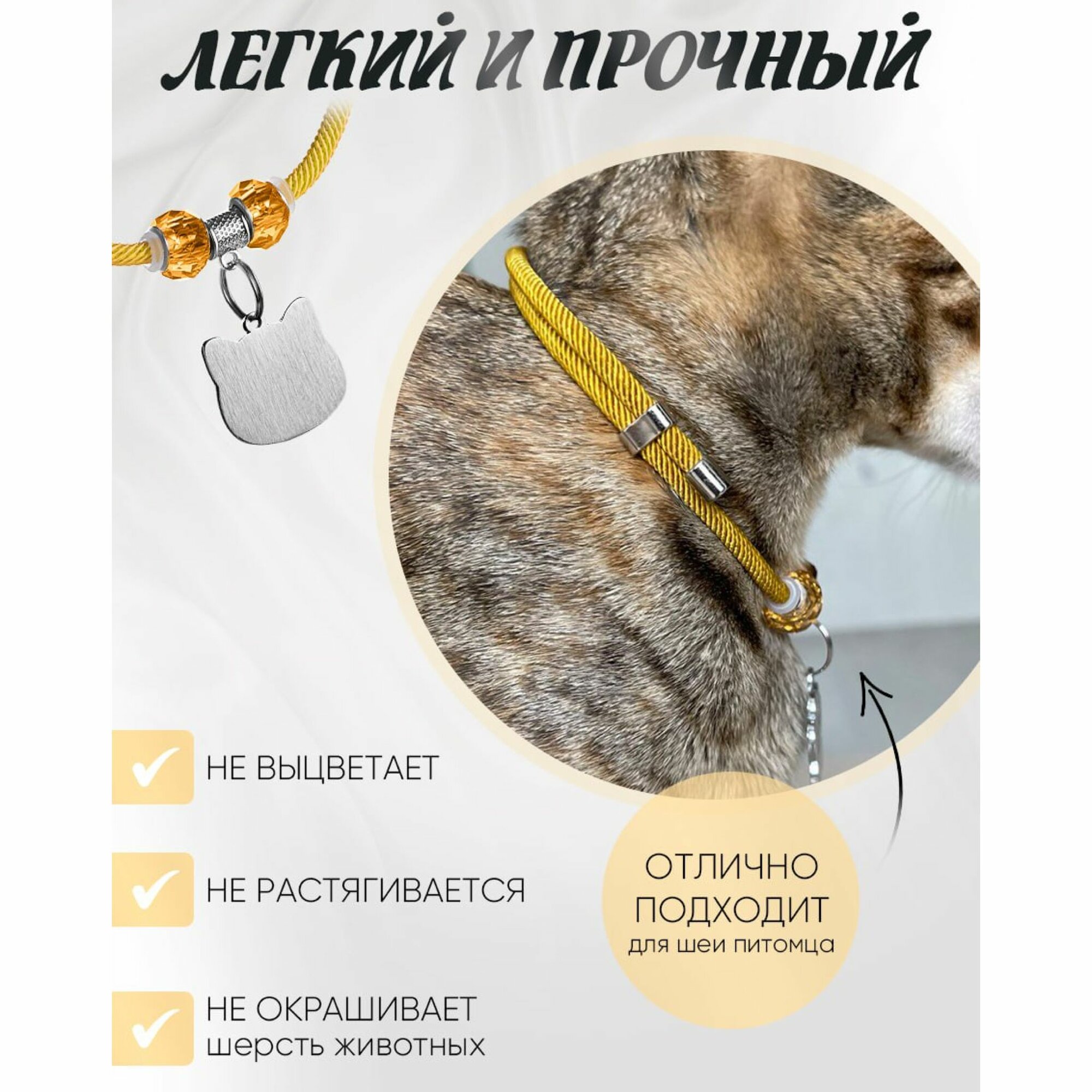 Ошейник для кошек и собак мелких пород с адресником "Балуем котика", горчичный. информация: