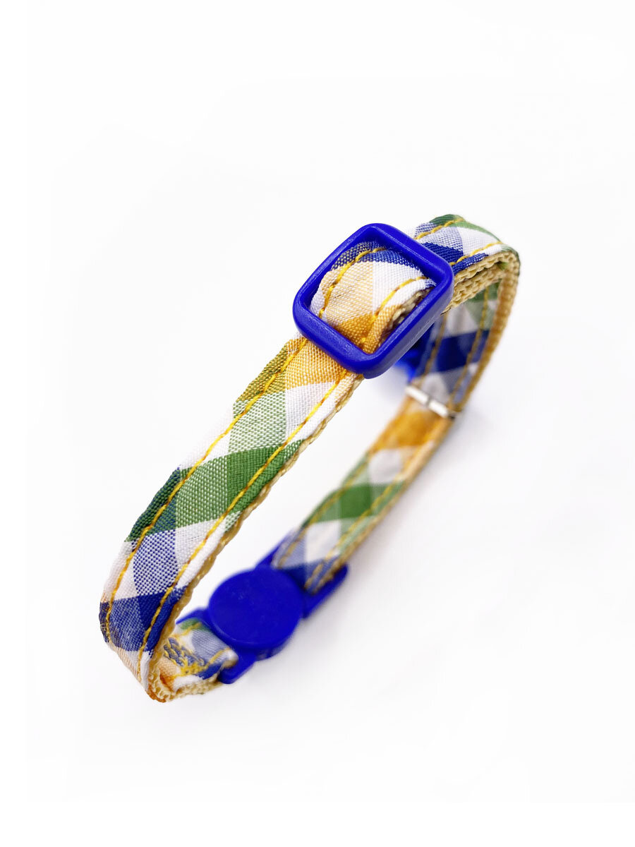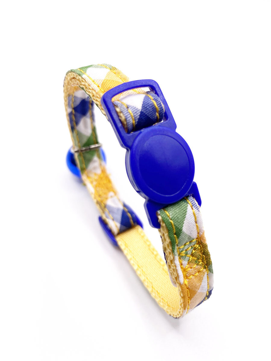 Безопасный ошейник Japan Premium Pet "Элегантный котик" в клеточку, синий информация: