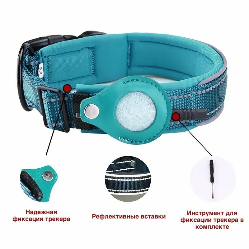 Нейлоновый ошейник для собак с креплением трекера AirTag Бирюзовый L 1 259 ₽