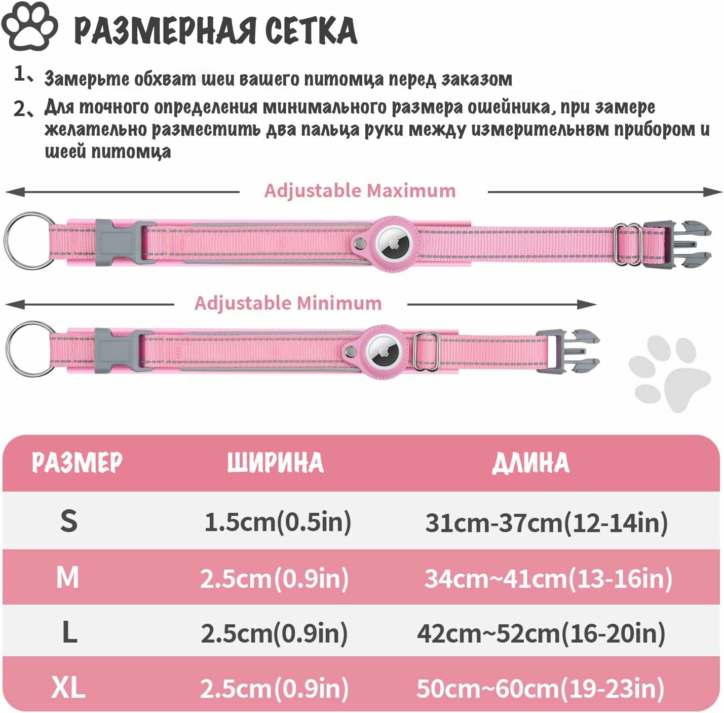 Нейлоновый ошейник для собак с креплением трекера AirTag Розовый L 1 229 ₽