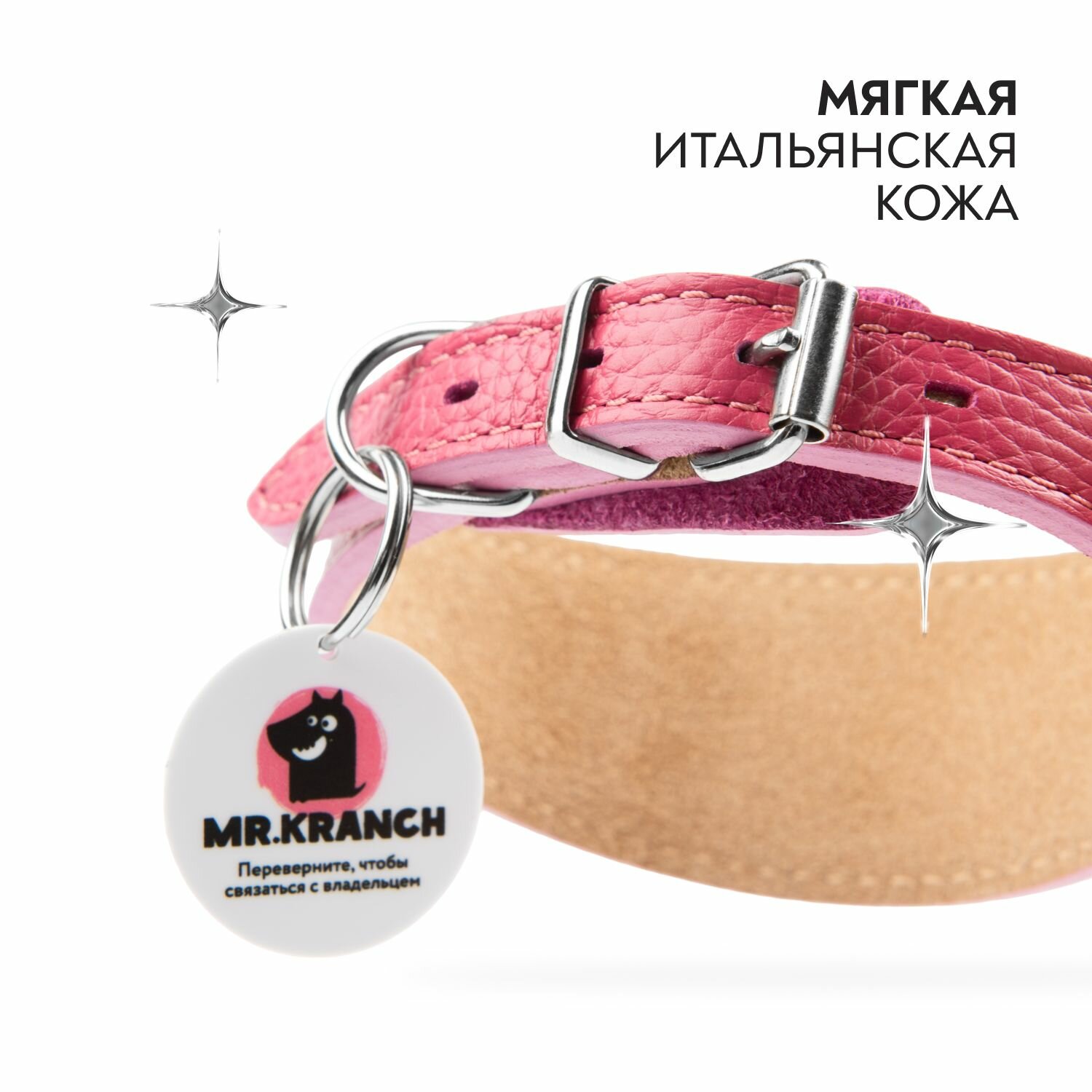 Ошейник Mr.Kranch для собак из натуральной кожи с QR-адресником, 30-35см, розовый VLT-MKR174546 3 933 ₽