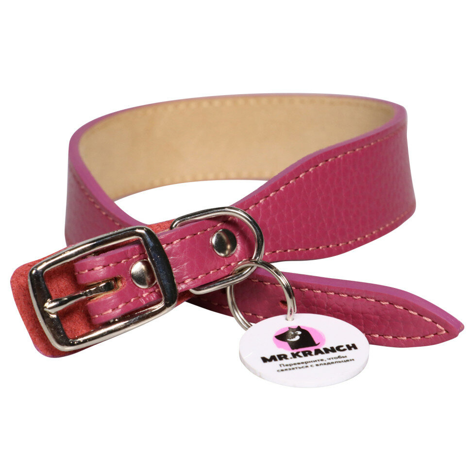10 цен на Mr.Kranch ошейник для собак из натуральной кожи с QR-адресником, 25-30 см, малиновый