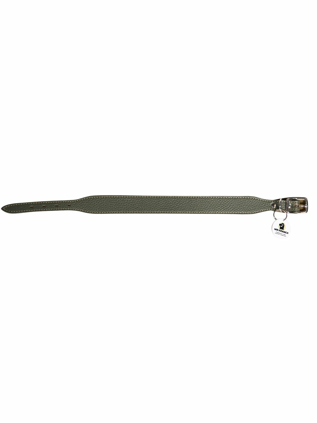 10 цен на Ошейник Mr.Kranch для собак из натуральной кожи с QR-адресником, 30-35см, оливковый VLT-MKR174669
