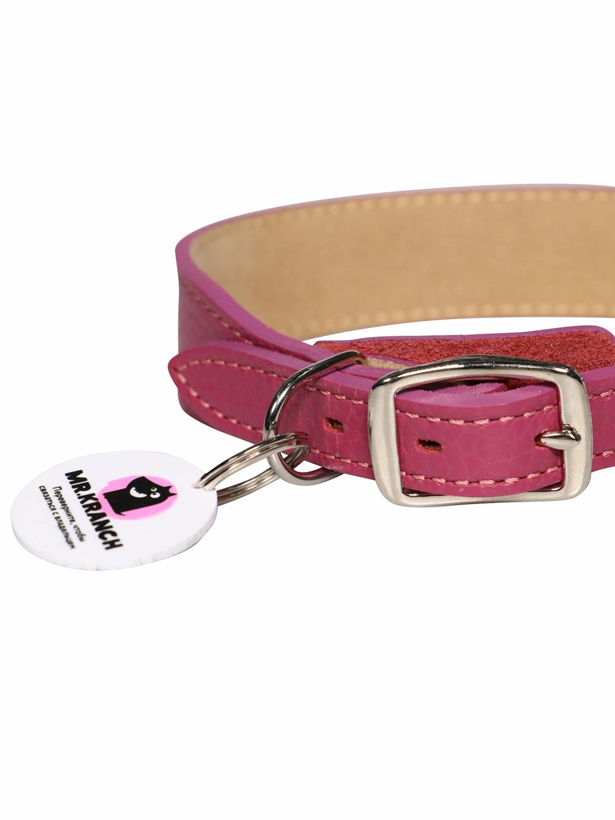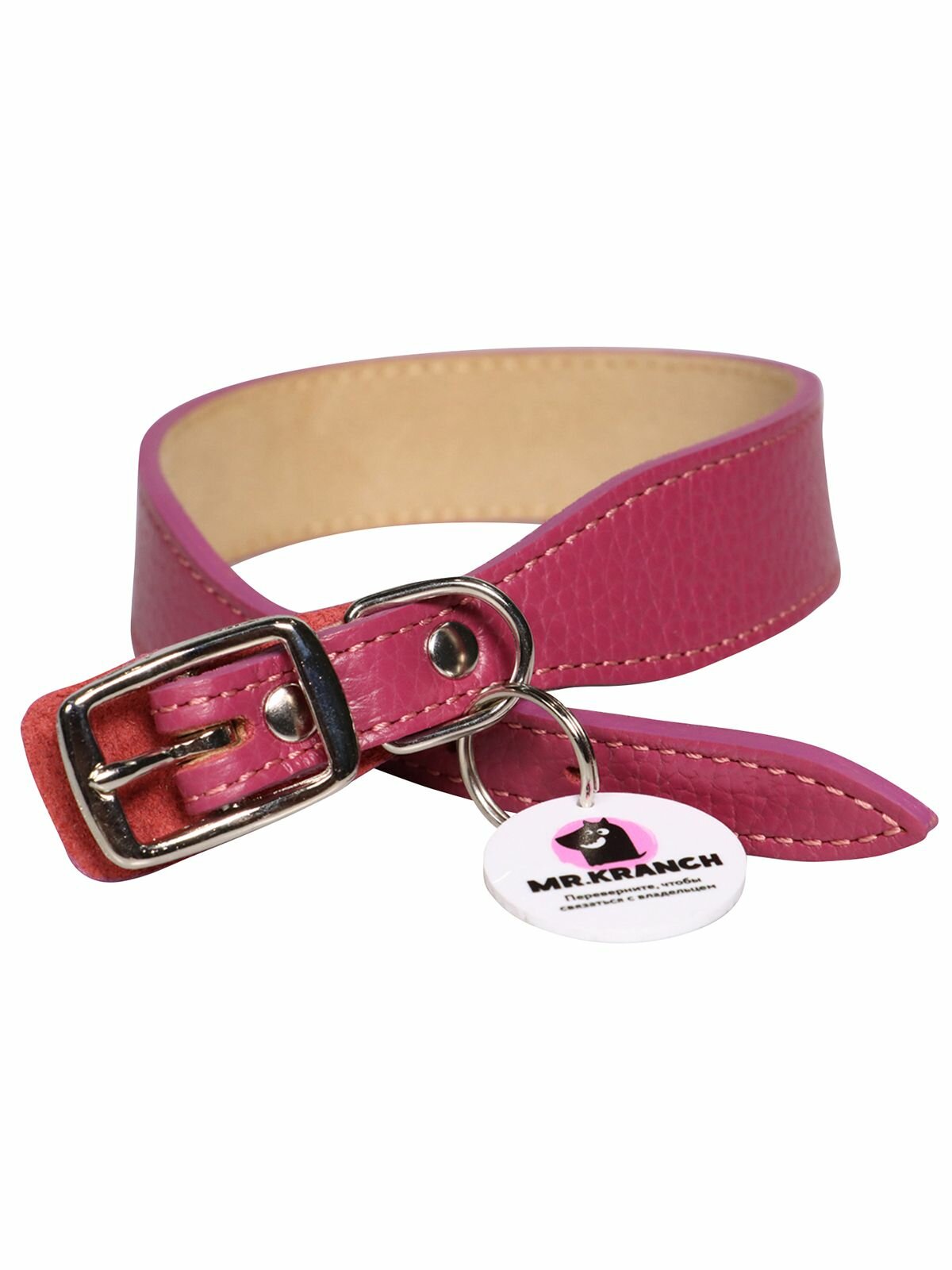 Mr.Kranch ошейник для собак из натуральной кожи с QR-адресником, 25-30 см, малиновый
