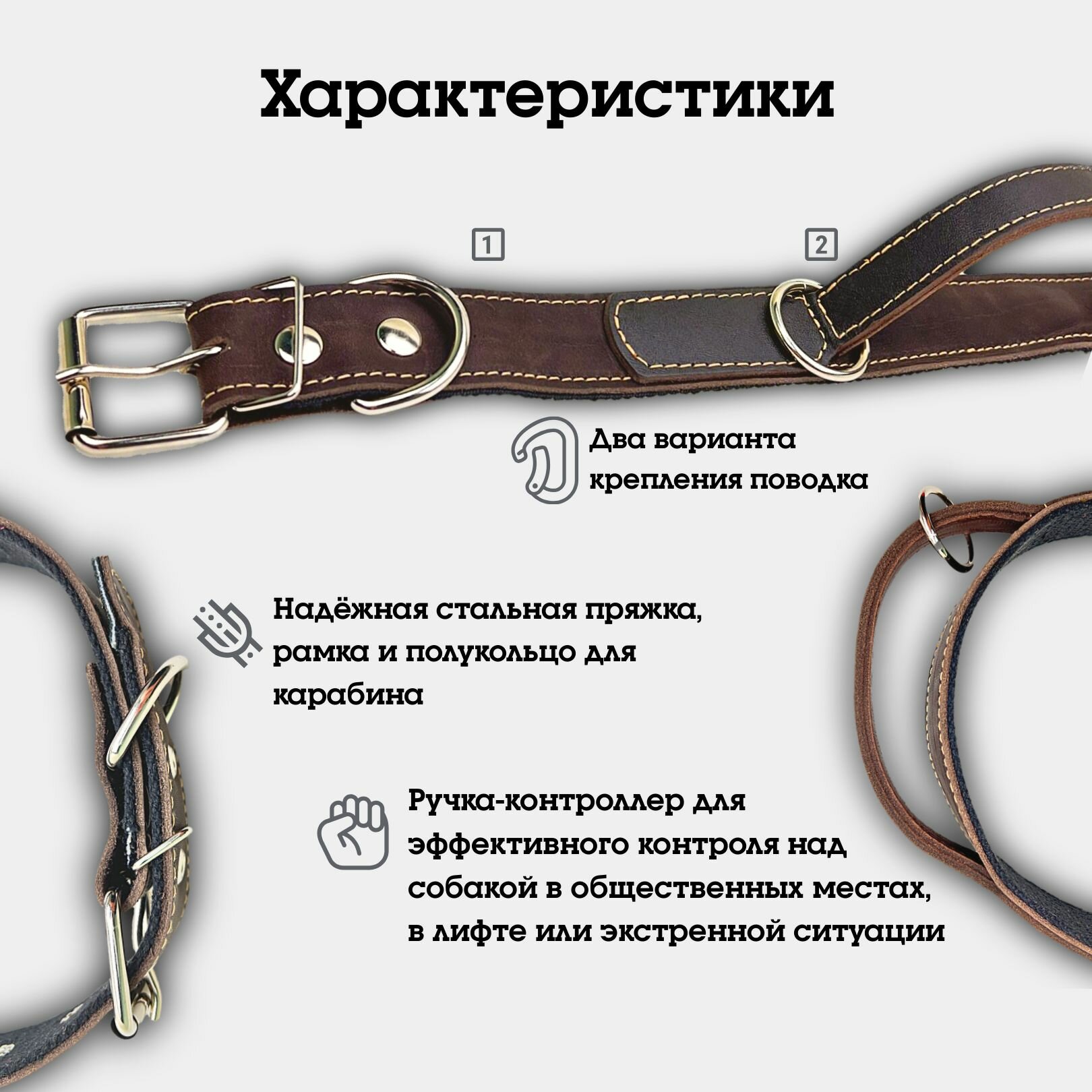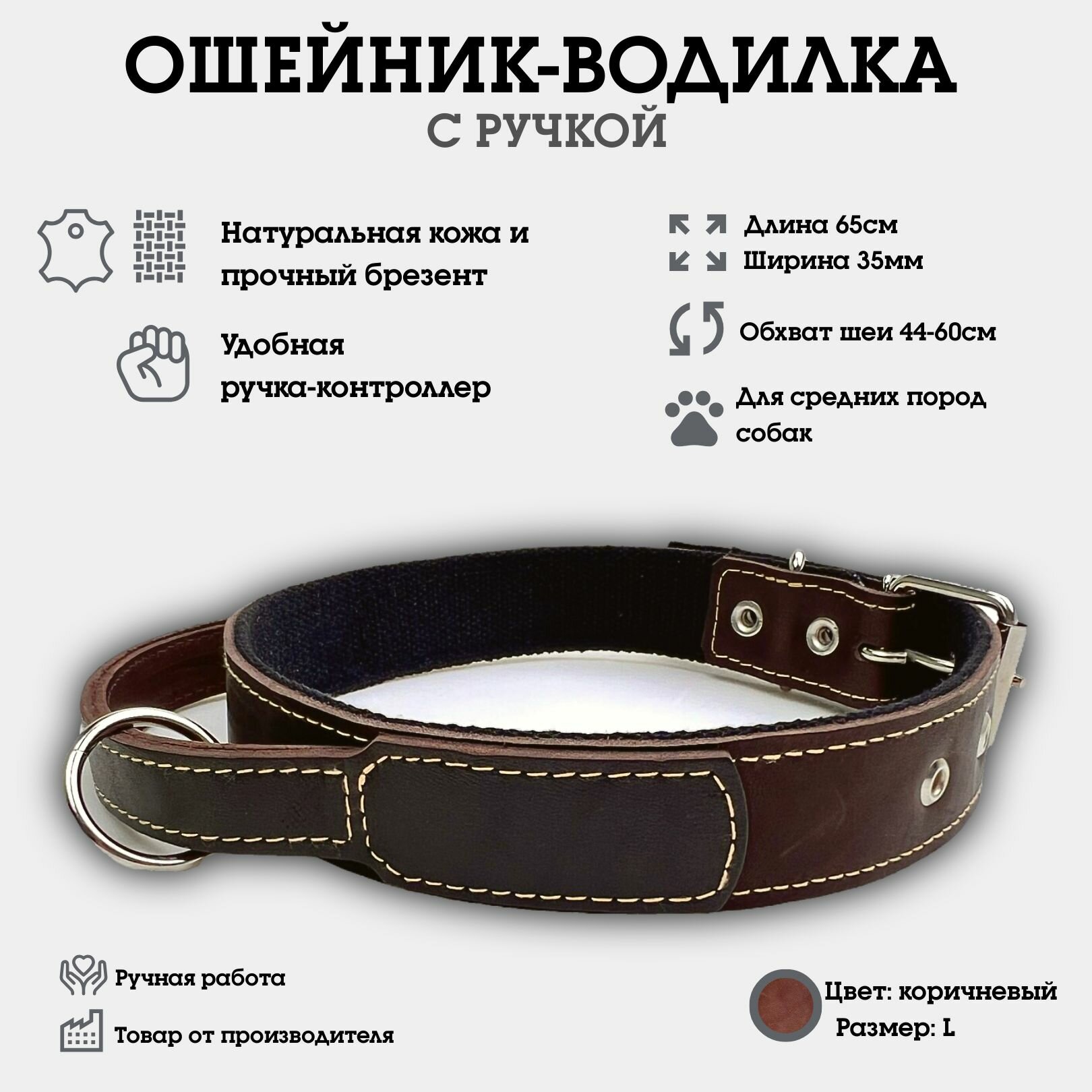 Ошейник водилка, с ручкой, из натуральной кожи и брезента, двойной, для средних и крупных собак L информация: