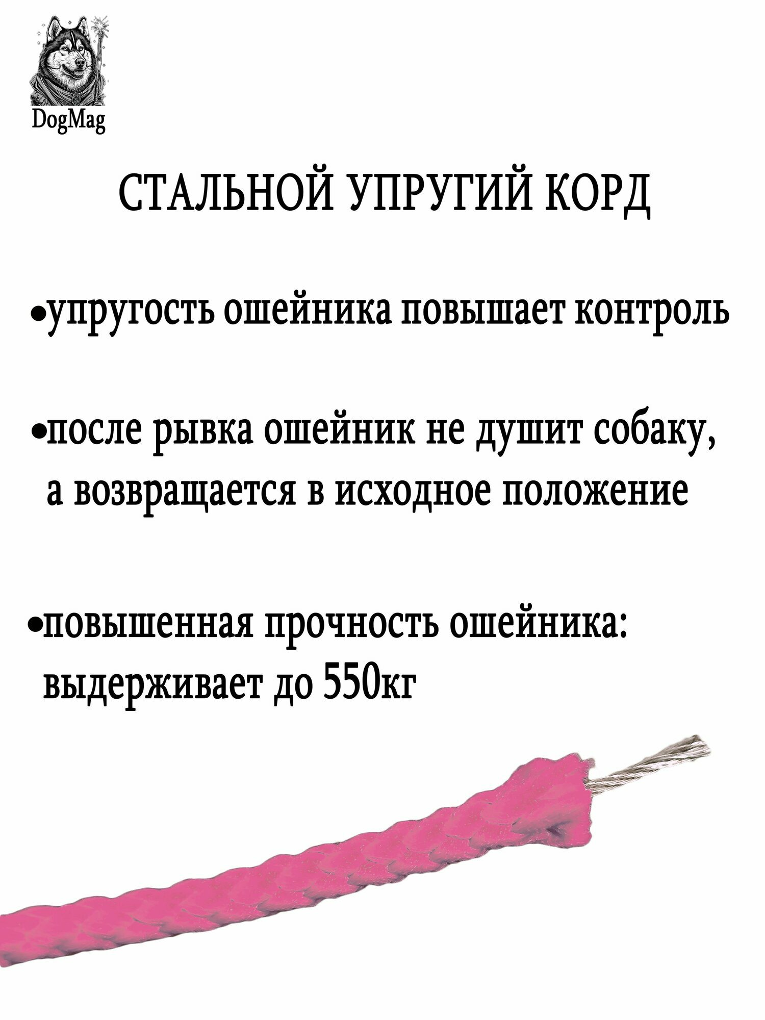 10 цен на Ошейник контроллер, удавка, корректор поведения, стальной сердечник, 2 стальных стопора, премиум, розовый, до 65см