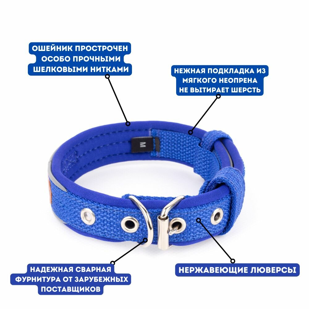 Ошейник для небольших пород MagWay широкий 2,5см, мягкий, для щенков и взрослых, обхват шеи 25-35см, цвет синий информация: