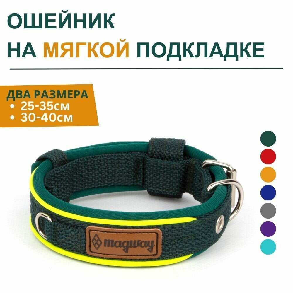 Ошейник для небольших пород MagWay широкий 2,5см, мягкий, для щенков и взрослых, обхват шеи 25-35см, цвет зеленый информация: