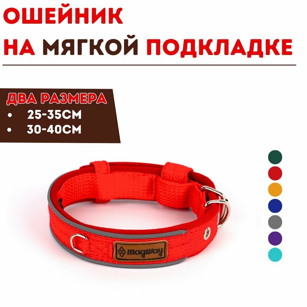 Ошейник для небольших пород MagWay широкий 2,5см, мягкий, для щенков и взрослых, обхват шеи 30-40см, цвет красный информация:
