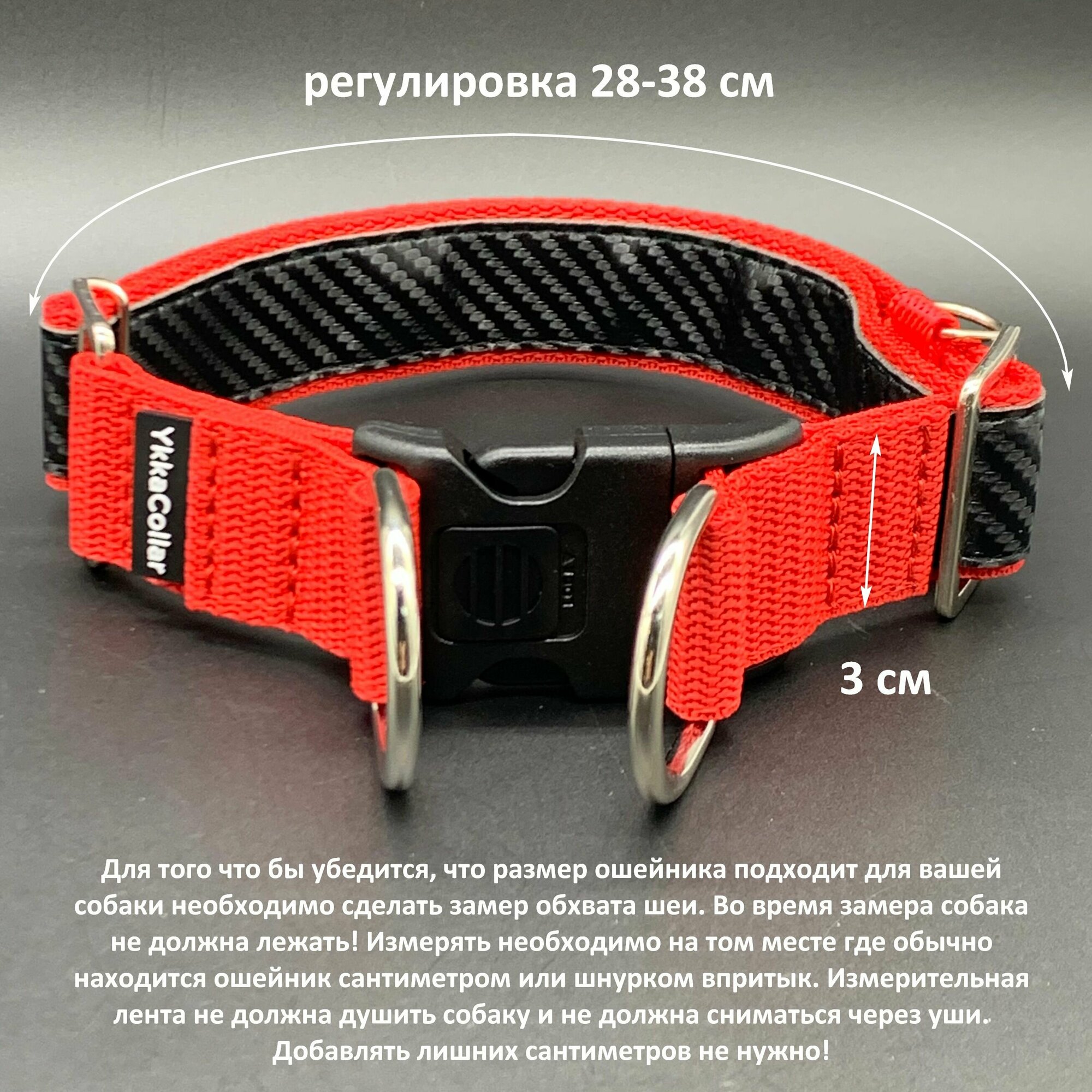 Ошейник на фастексе с регулировкой YkkaСollar для собаки, шириной 3 см на обхват шеи 28-38 см информация: