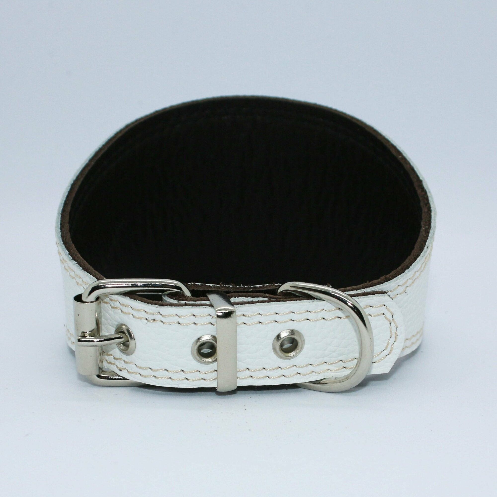 10 цен на Ошейник-селедка белый для собак из натуральной кожи. Обхват шеи 28-32 см, ширина 6,5 см