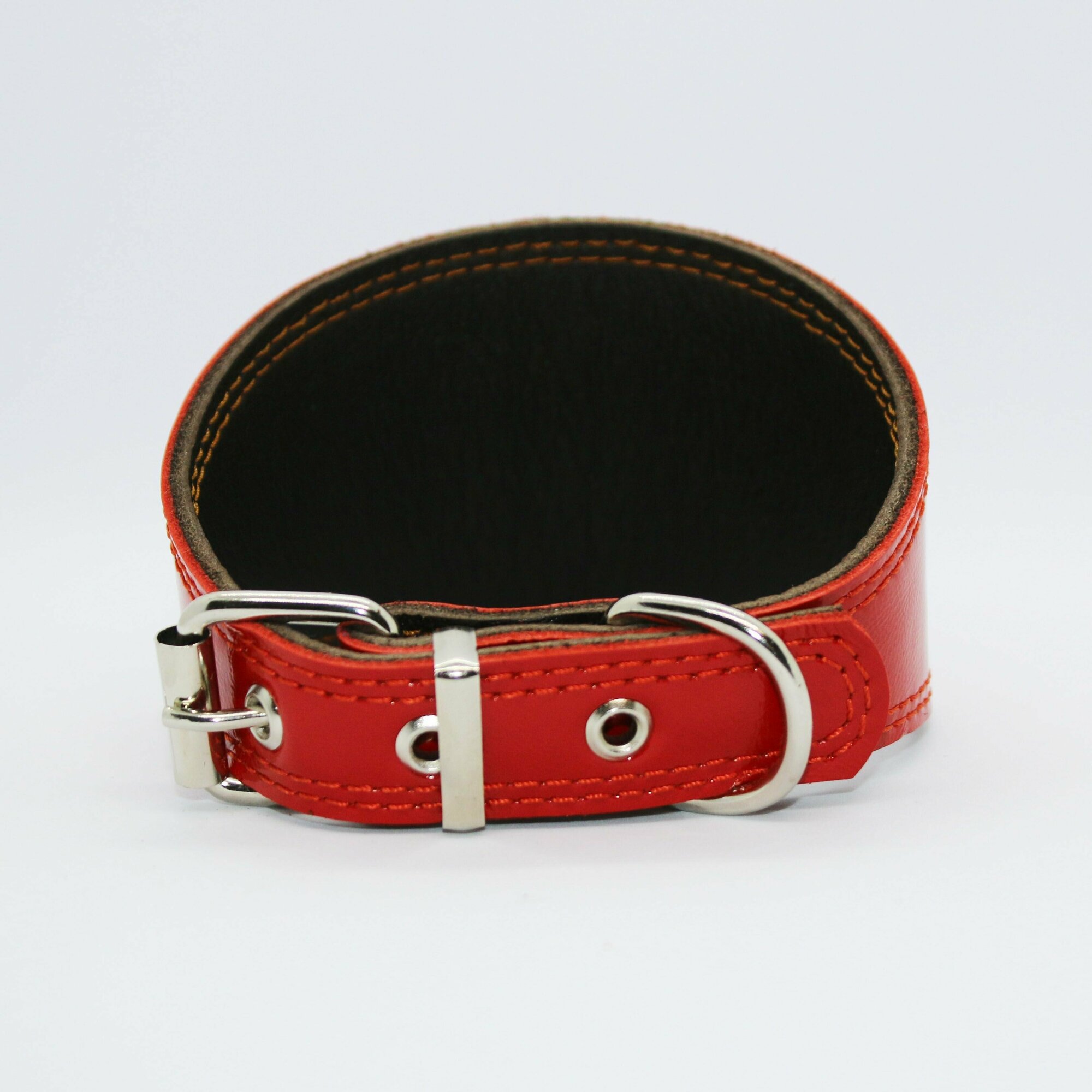 Отзывы на Ошейник-селедка лаковый красный для собак из натуральной кожи. Обхват шеи 28-32 см, ширина 6,5 см
