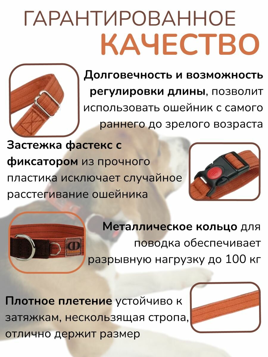 10 цен на Ошейник широкий повседневный, CORADOG Basic, для средних и крупных собак, терракотовый, коричневый, размер M-4 38-54 см