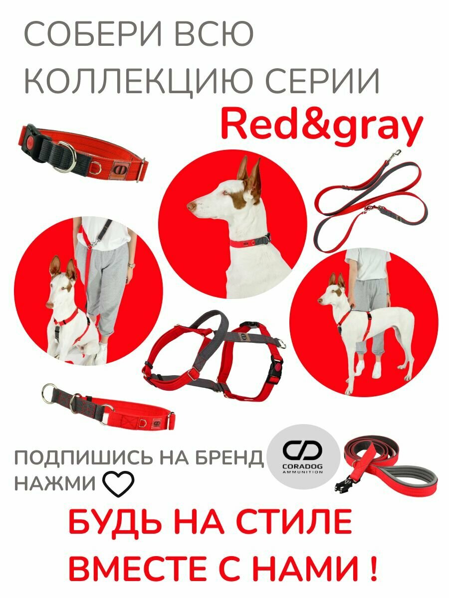 Ошейник широкий повседневный, CORADOG Basic, для средних и крупных собак, красный серый, размер L-4 48-70 см 1 550 ₽
