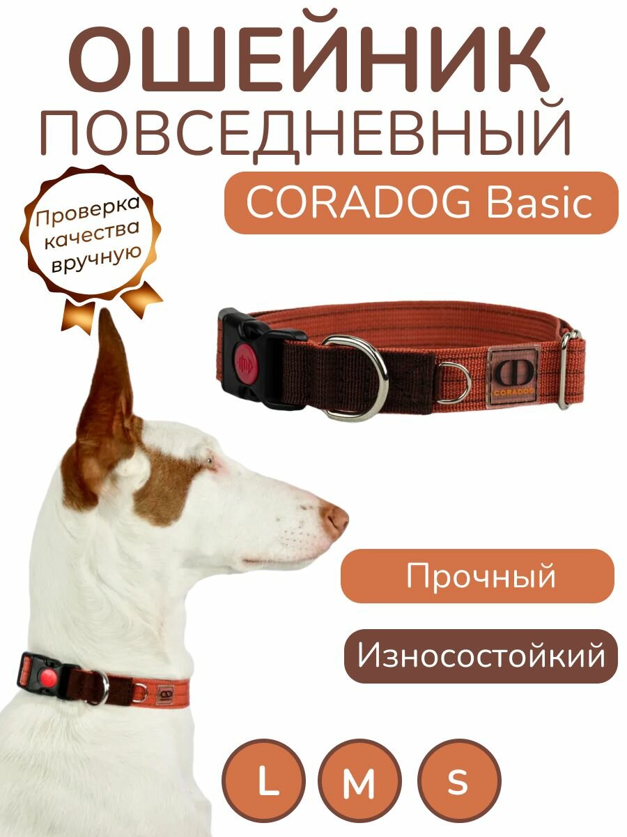 Ошейник повседневный, CORADOG Basic, для средних и крупных собак, терракотовый, коричневый, размер L 42-65 см 741 ₽