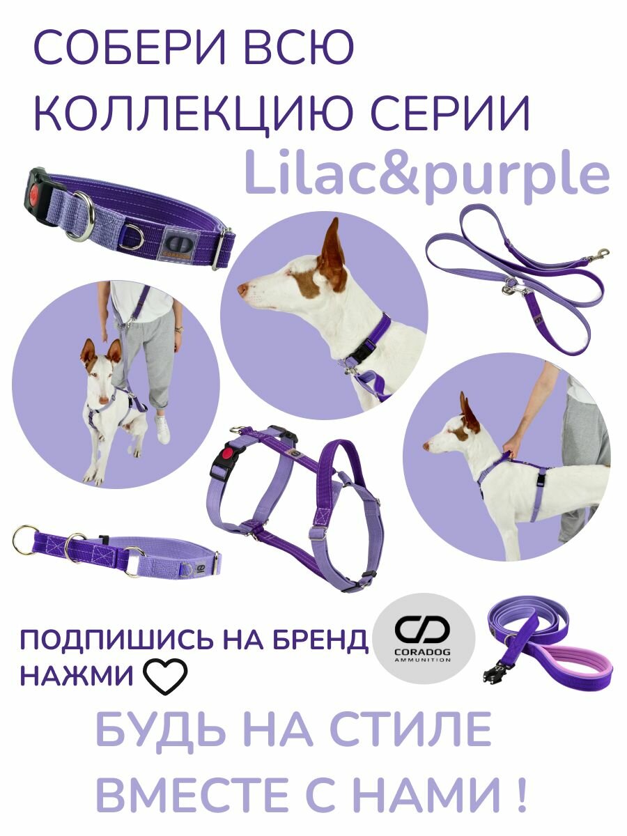 Ошейник широкий повседневный, CORADOG Basic, для средних и крупных собак, сиреневый фиолетовый, размер L-4 48-70 см 1 550 ₽