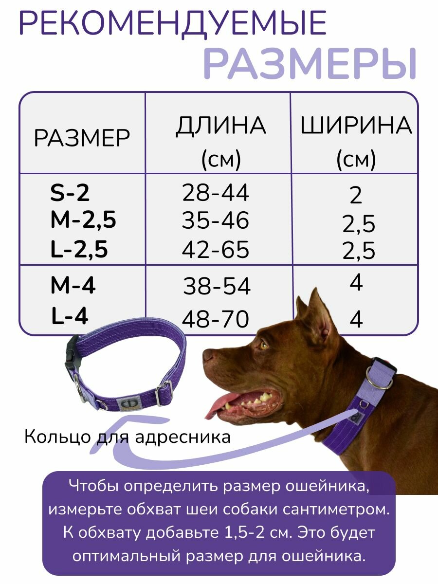 Ошейник повседневный, CORADOG Basic, для средних и крупных собак, сиреневый фиолетовый, размер L 42-65 см информация: