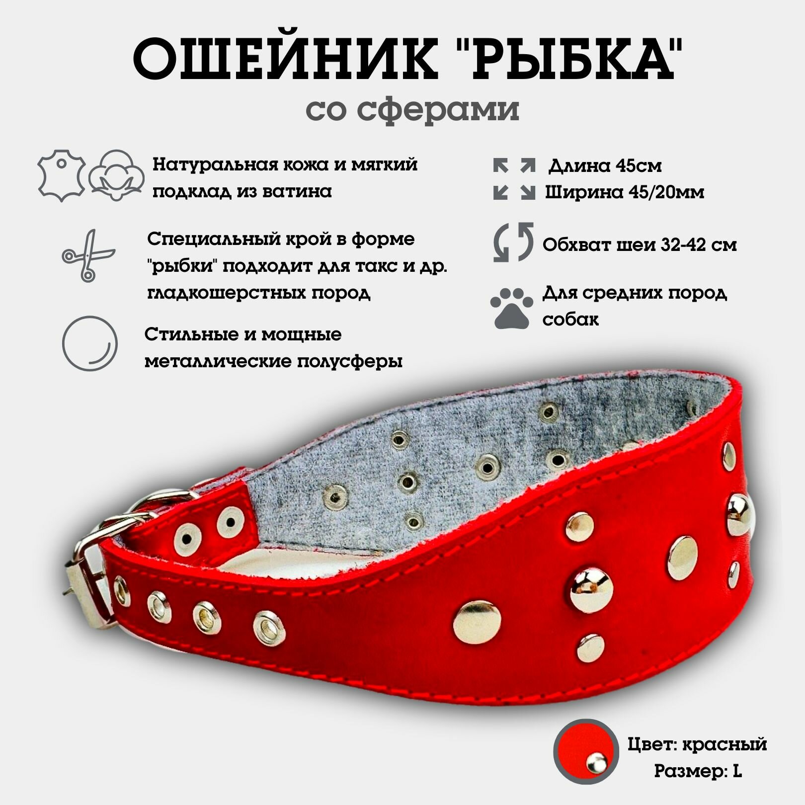 Ошейник "Селедка со сферами" из натуральной кожи и ватина L информация: