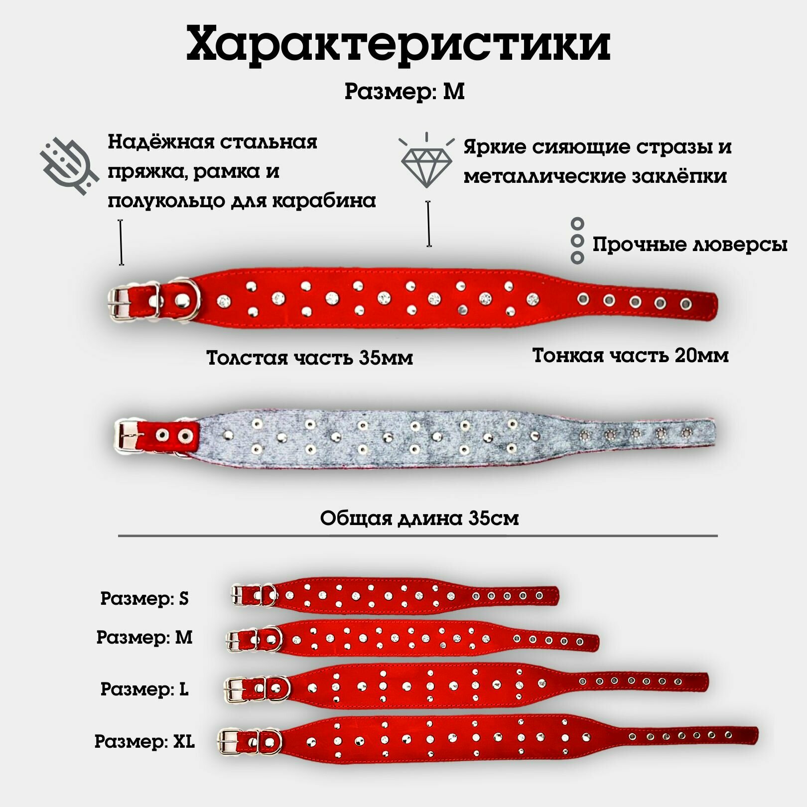 Ошейник "Селедка со стразами" из натуральной кожи и ватина M информация: