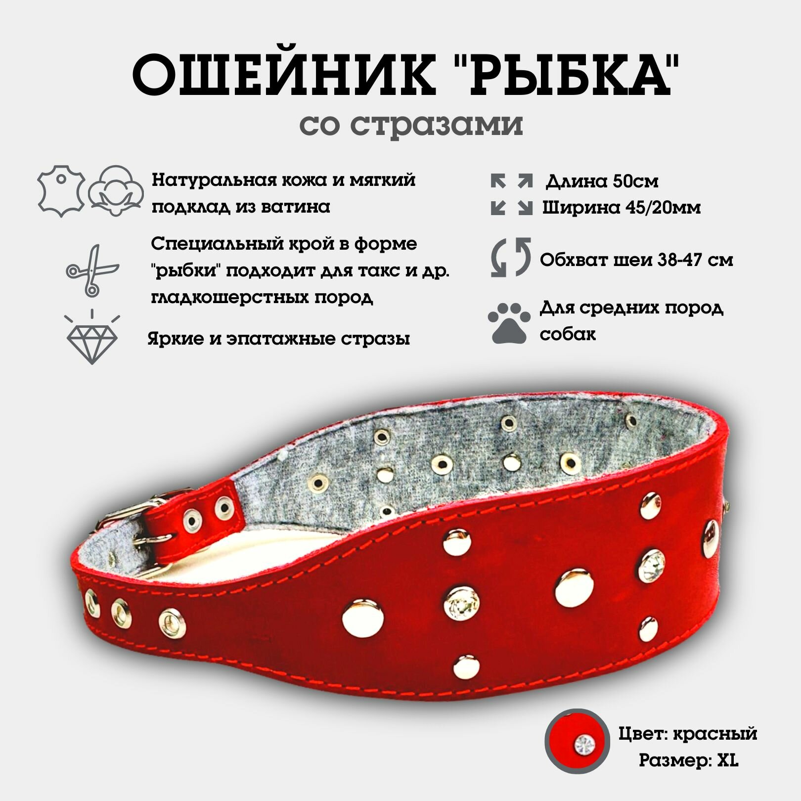 Ошейник "Селедка со стразами" из натуральной кожи и ватина XL информация: