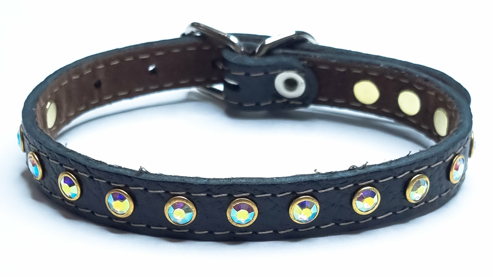 Ошейник кожаный с замшевым подкладом и украшениями стразы для собак, кошек, кроликов / ширина 10 мм. ОШ 22-28 информация: