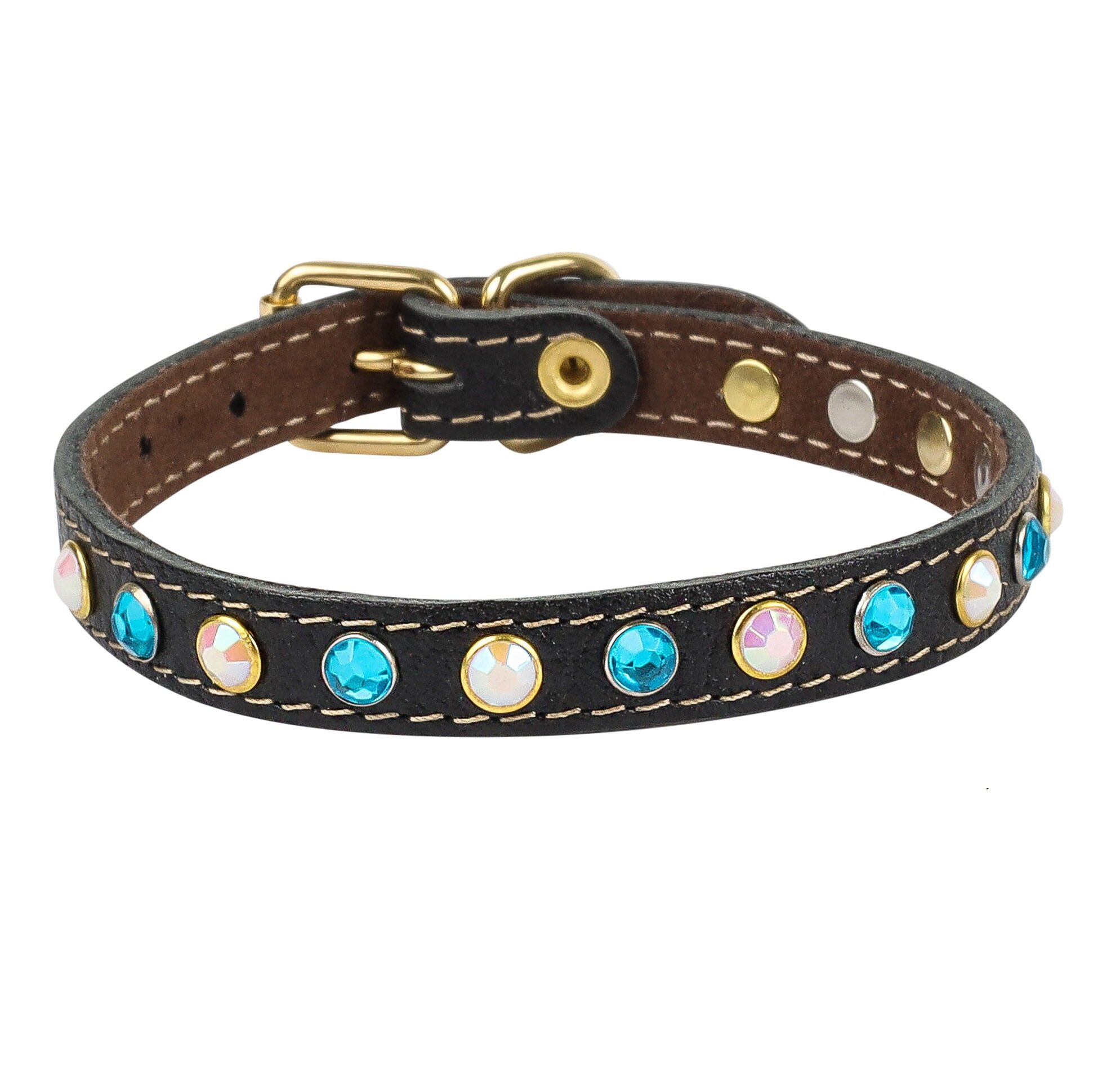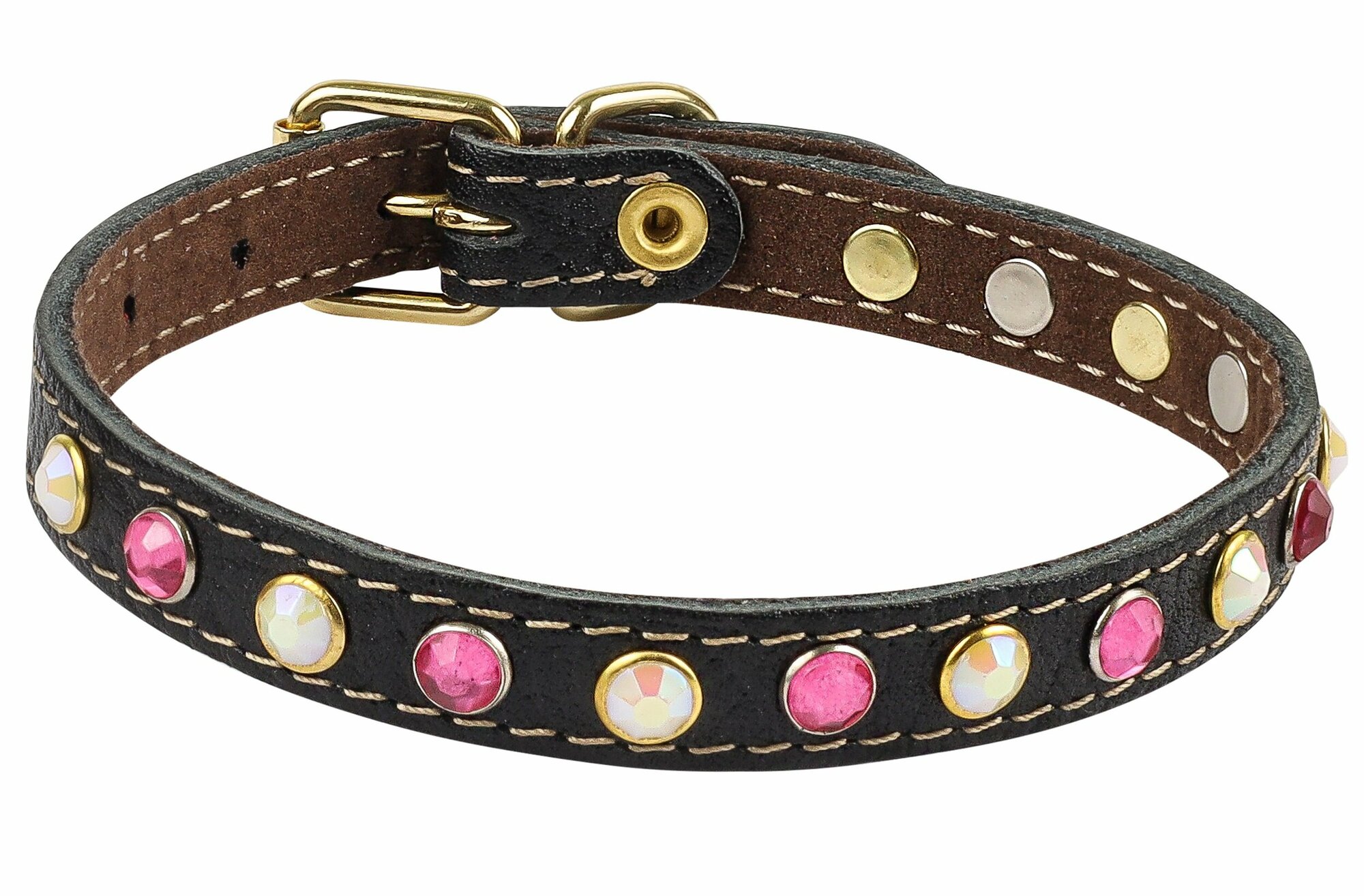10 цен на Ошейник кожаный с замшевым подкладом и украшениями стразы для собак, кошек, кроликов / ширина 10 мм. ОШ 22-28