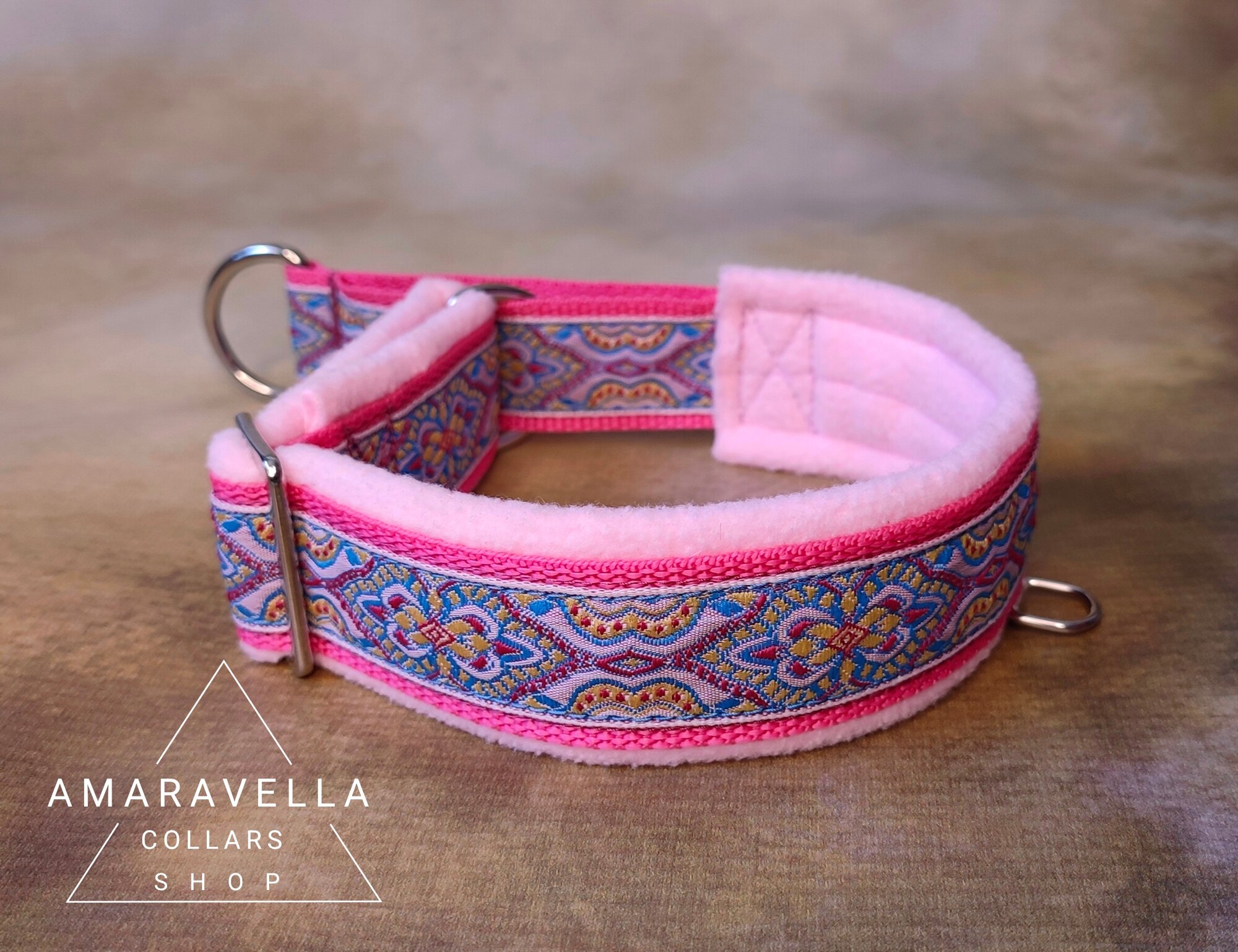 Розовый ошейник с восточным узором L для собак полуудавка "Мартингейл" ручной работы, ошейник для собак информация: