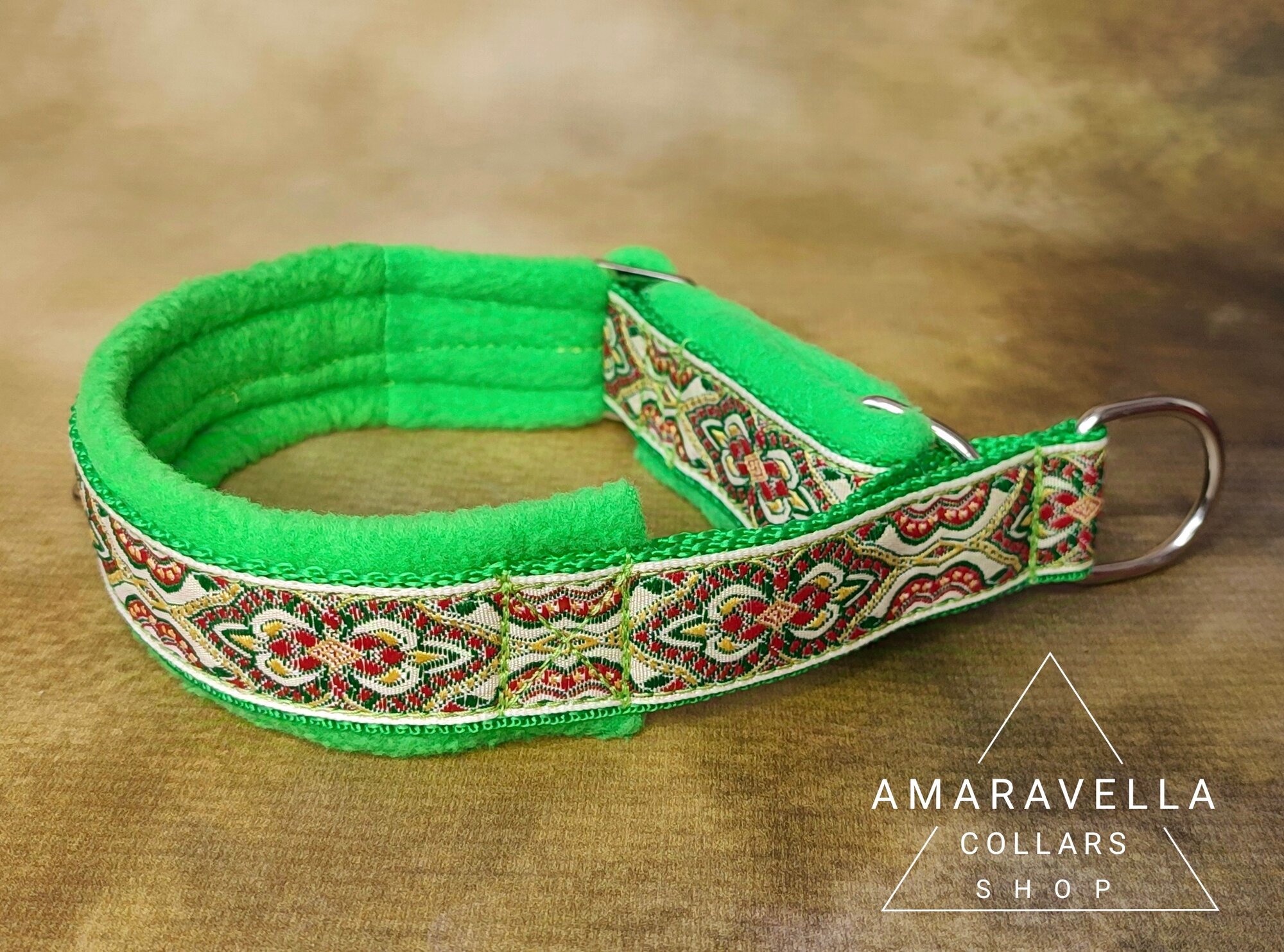 Зеленый яркий ошейник с восточным узором M для собак полуудавка "Мартингейл" ручной работы, ошейник для собак информация:
