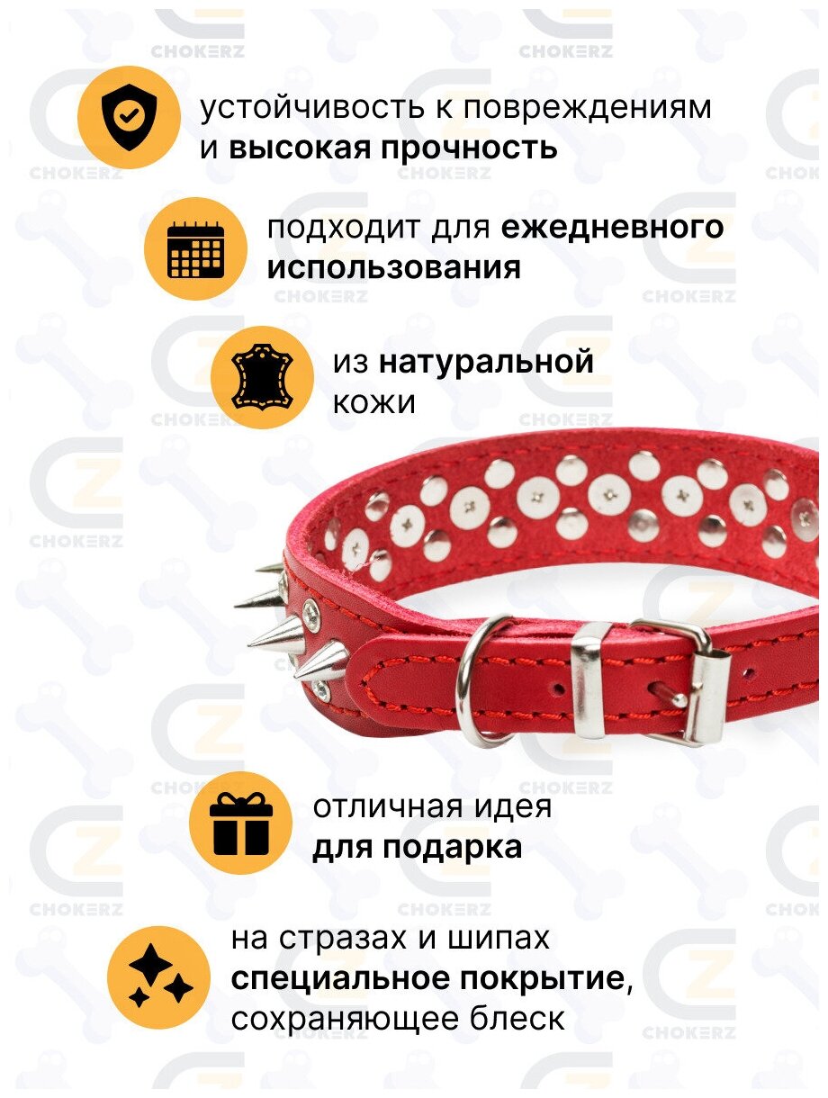 Ошейник кожаный красный CHOKERZ со стразами и шипами для средних и крупных собак. 42-50 см. информация: