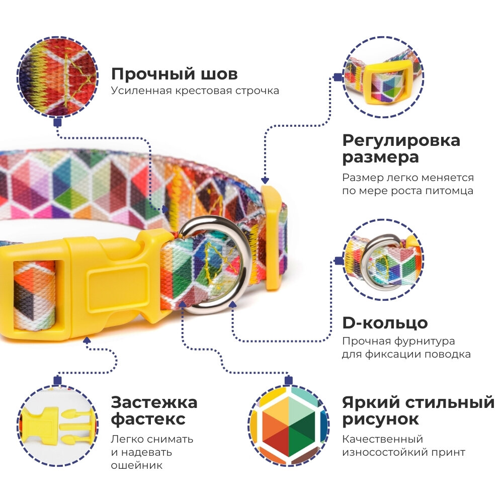 10 цен на Ошейник для мелких пород собак "Пестрый калейдоскоп", XS/S