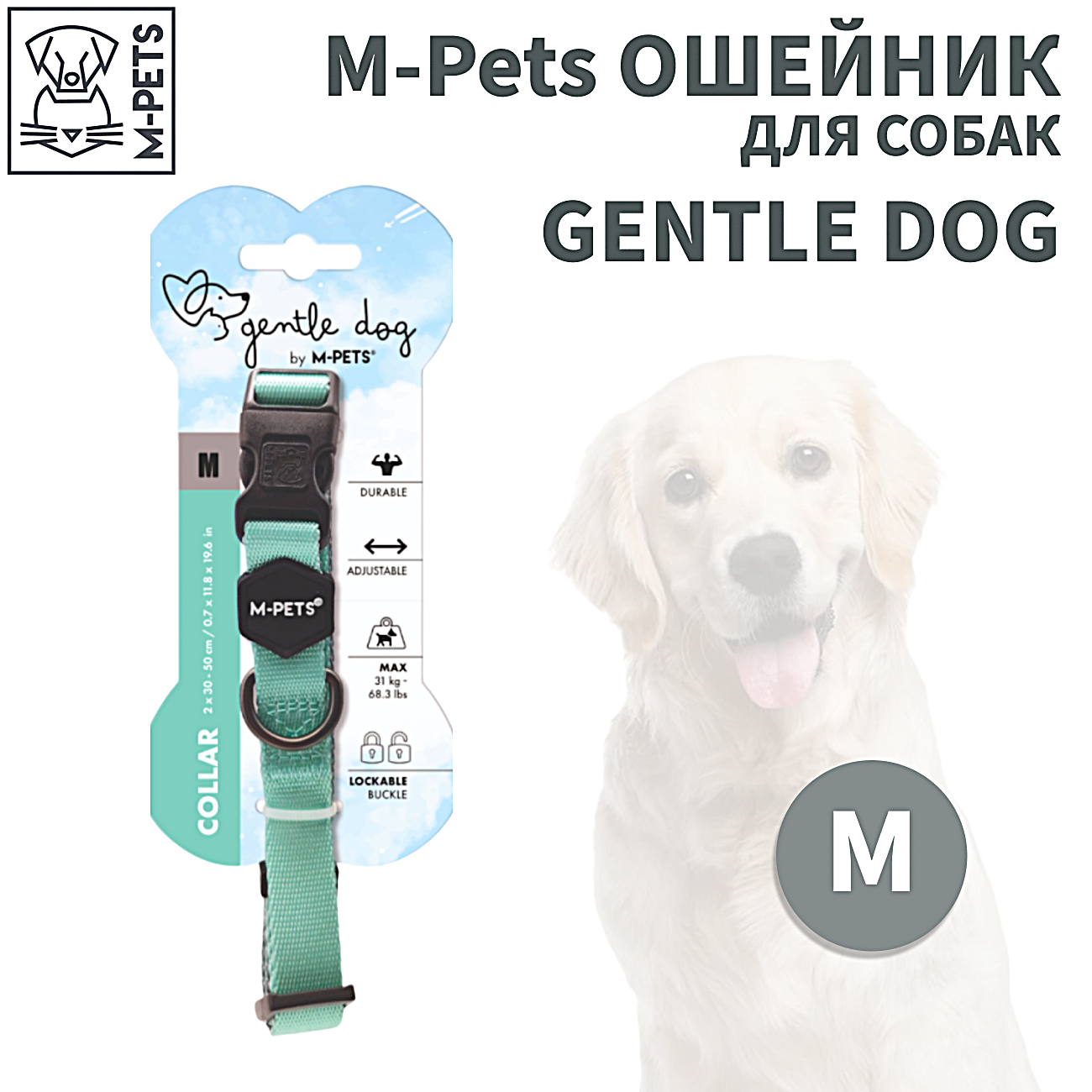 M-Pets 10851699 GENTLE DOG Ошейник для собак М 30-50см бирюзовый информация: