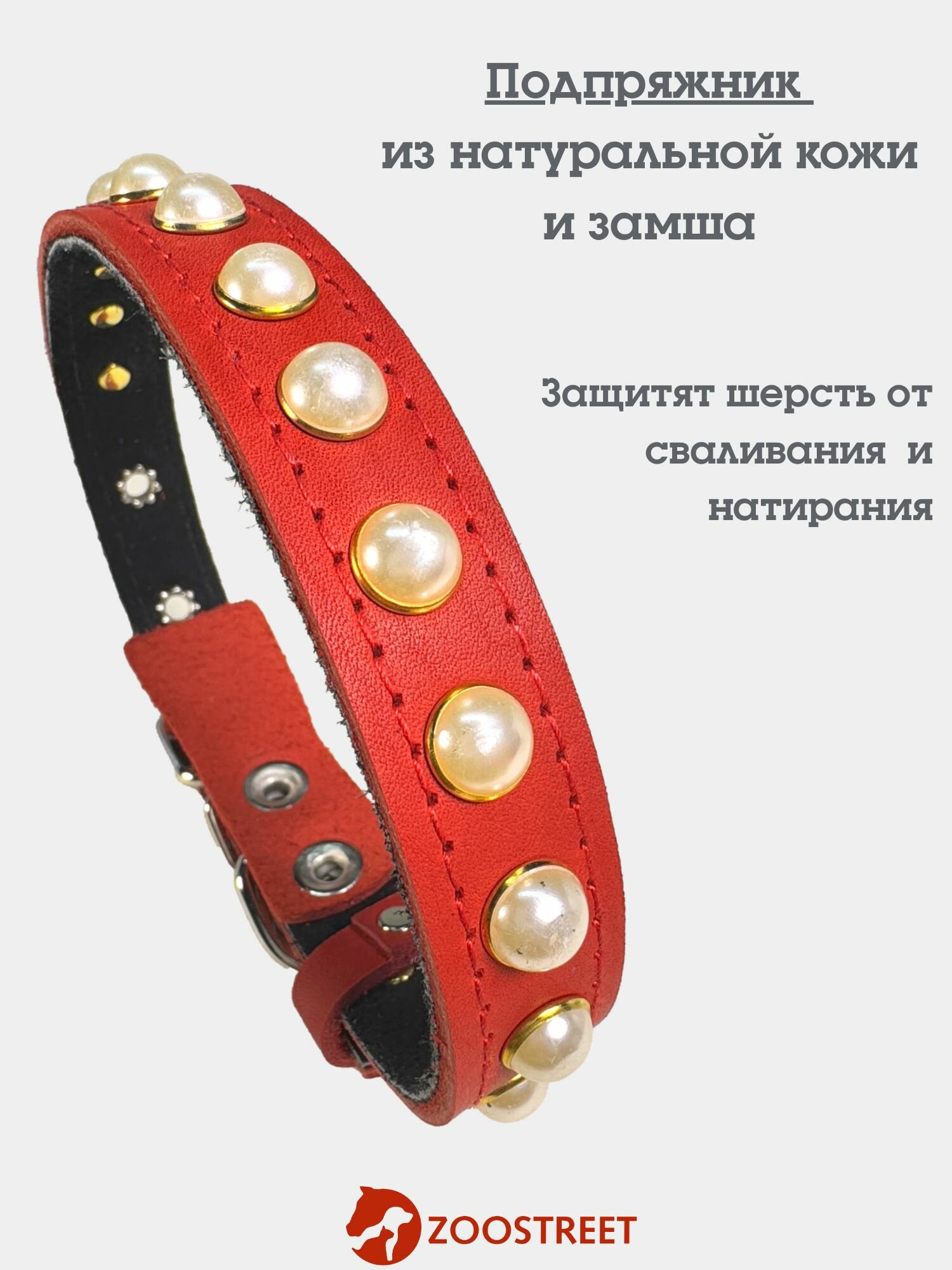 Отзывы на Ошейник для собак средних пород кожаный, с жемчугом и подкладом из натуральной замши 25мм, 50см, с подпряжником L
