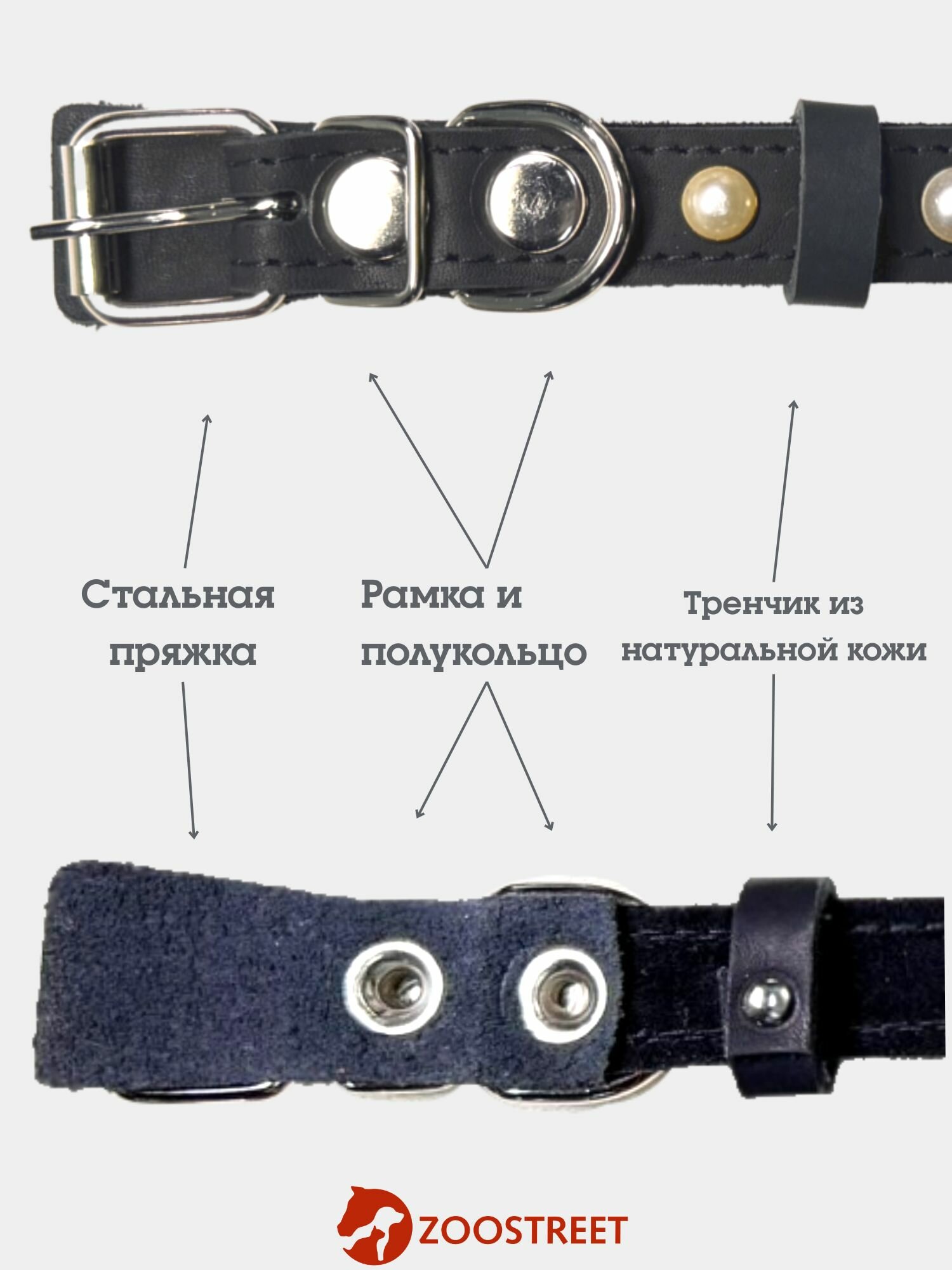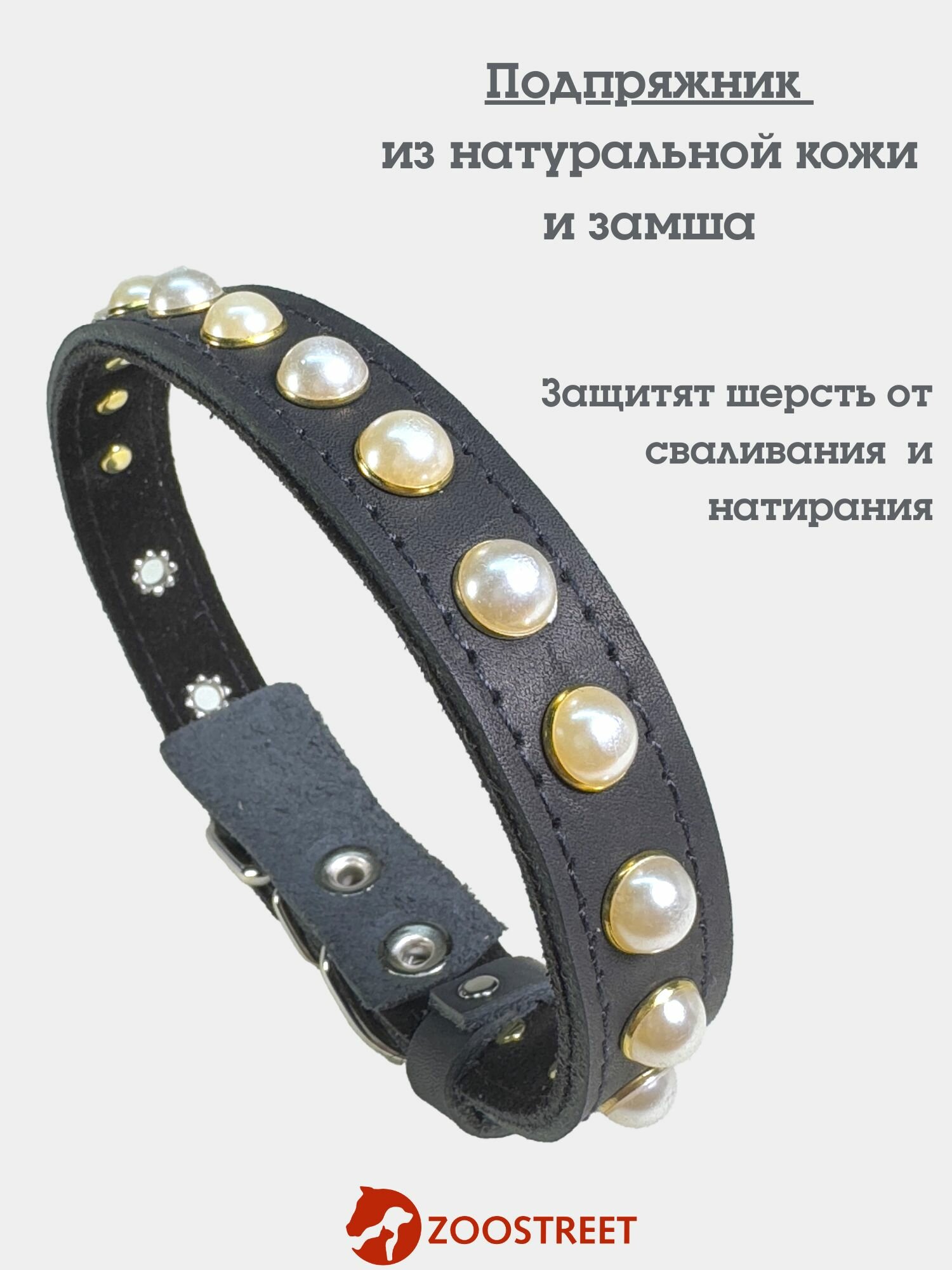 Отзывы на Ошейник для собак мелких пород кожаный, с жемчугом и подкладом из натуральной замши 20мм, 45см, с подпряжником М
